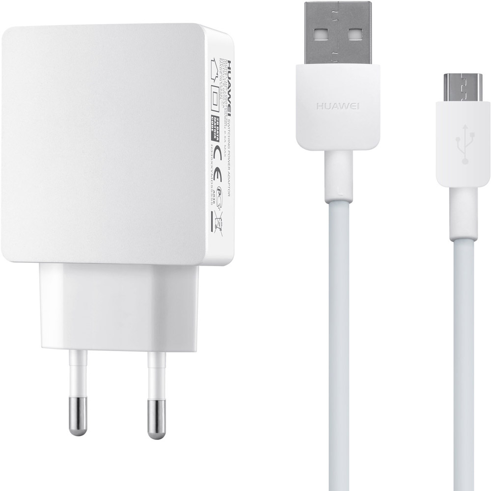 Huawei Charger 5V2A (EU) with 2A Micro USB Data - захранване за ел. мрежа и microUSB кабел за мобилни устройства (бял)