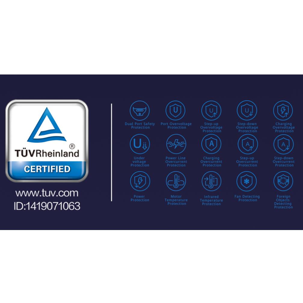 - Безопасна и здрва. Сертификатът TÜV за бързо зареждане на системата осигурява 15 слоя защита за енергично и бързо безопасно зареждане на любимия ви телефон.