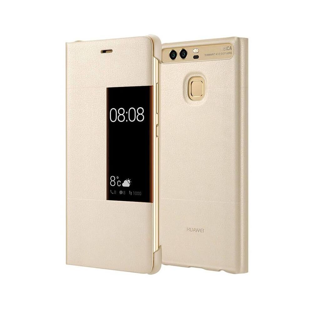 Huawei Flip Case with Window - оригинален кожен калъф с отвор за дисплея за Huawei P9 Plus (златист)