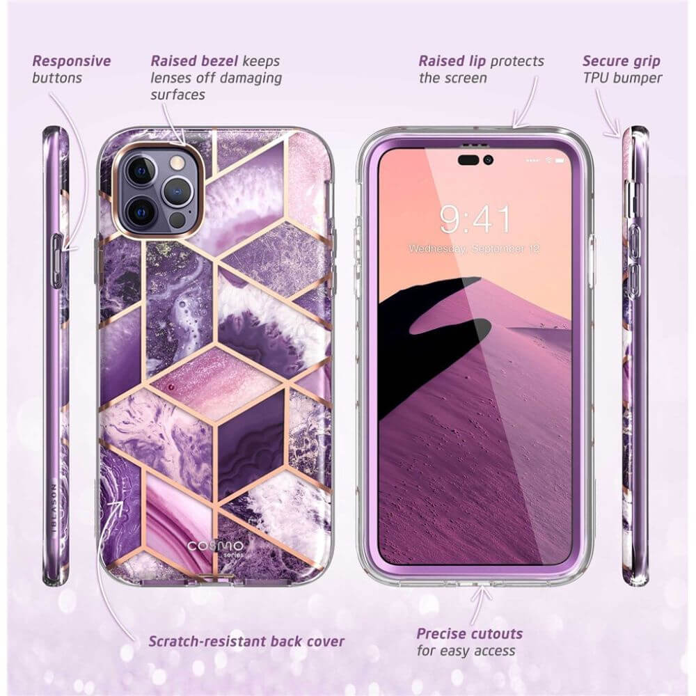 i-Blason Cosmo SupCase Protective Case - удароустойчив хибриден кейс с вграден протектор за дисплея за iPhone 14 Pro Max (лилав)