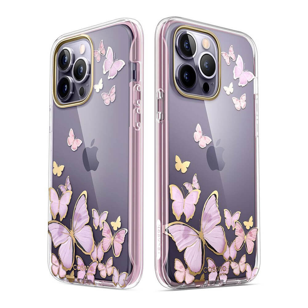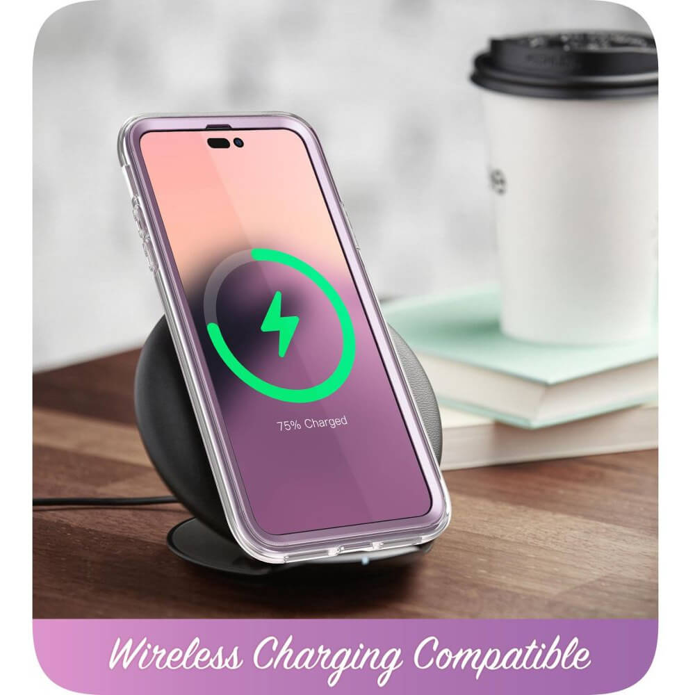 i-Blason Cosmo SupCase Protective Case - удароустойчив хибриден кейс с вграден протектор за дисплея за iPhone 14 Pro Max (лилав-прозрачен)