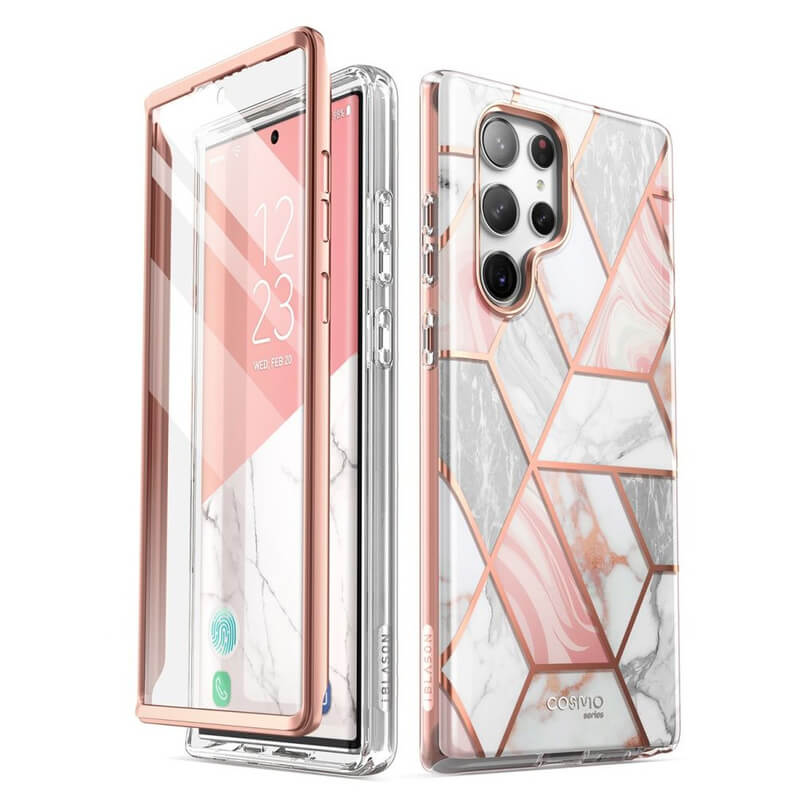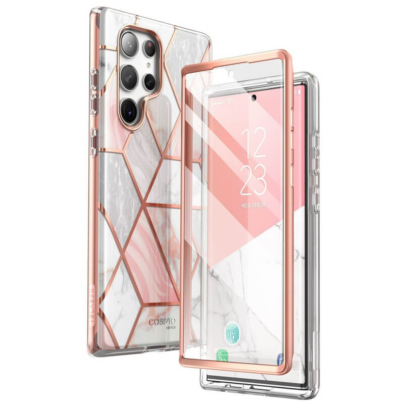 i-Blason Cosmo SupCase Protective Case - удароустойчив хибриден кейс с вграден протектор за дисплея за Samsung Galaxy S23 Ultra (бял)