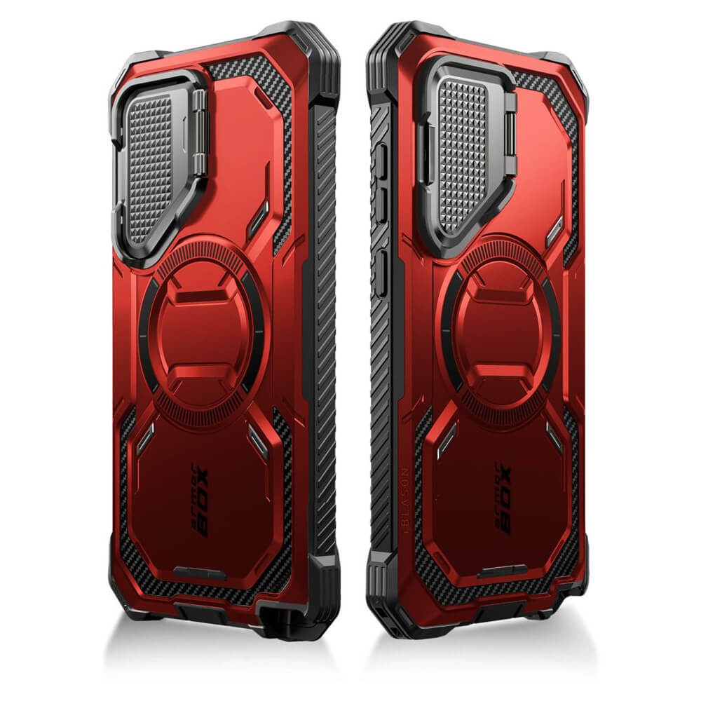 i-Blason SUPCASE ArmorBox MagSafe Case - удароустойчив хибриден кейс с MagSafe и вграден протектор за дисплея за Samsung Galaxy S24 (червен)