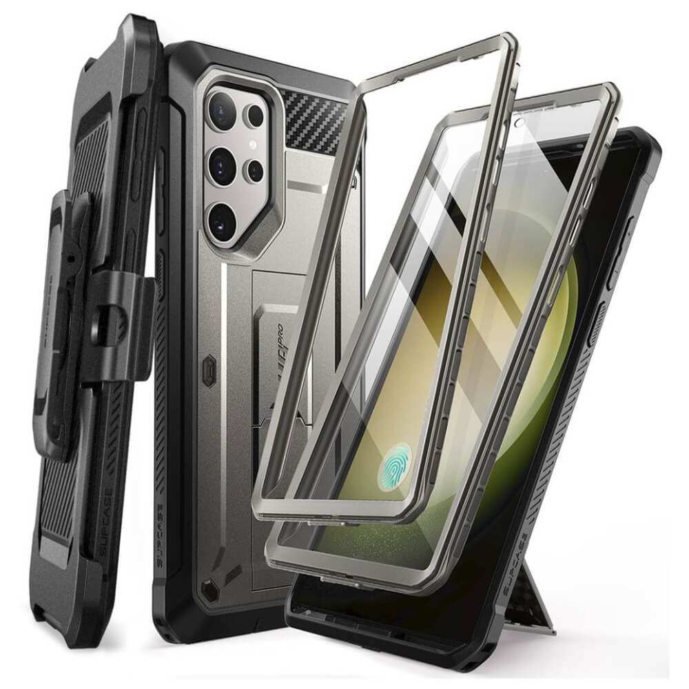 i-Blason SUPCASE Unicorn Beetle Pro Case with Screen Protector - удароустойчив хибриден кейс с вграден протектор за дисплея за Samsung Galaxy S24 Ultra (сив)