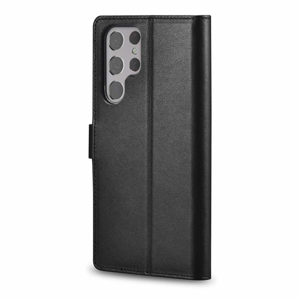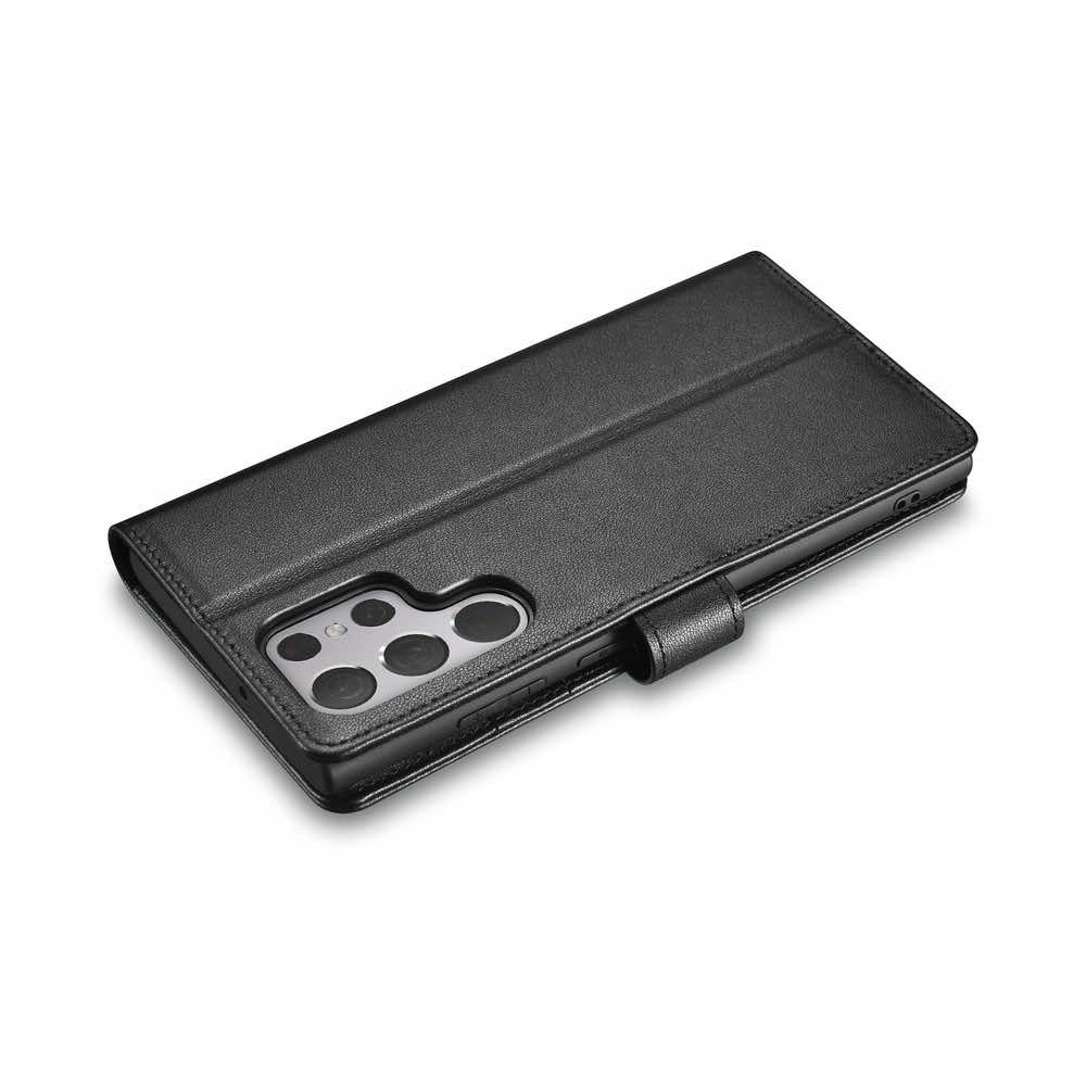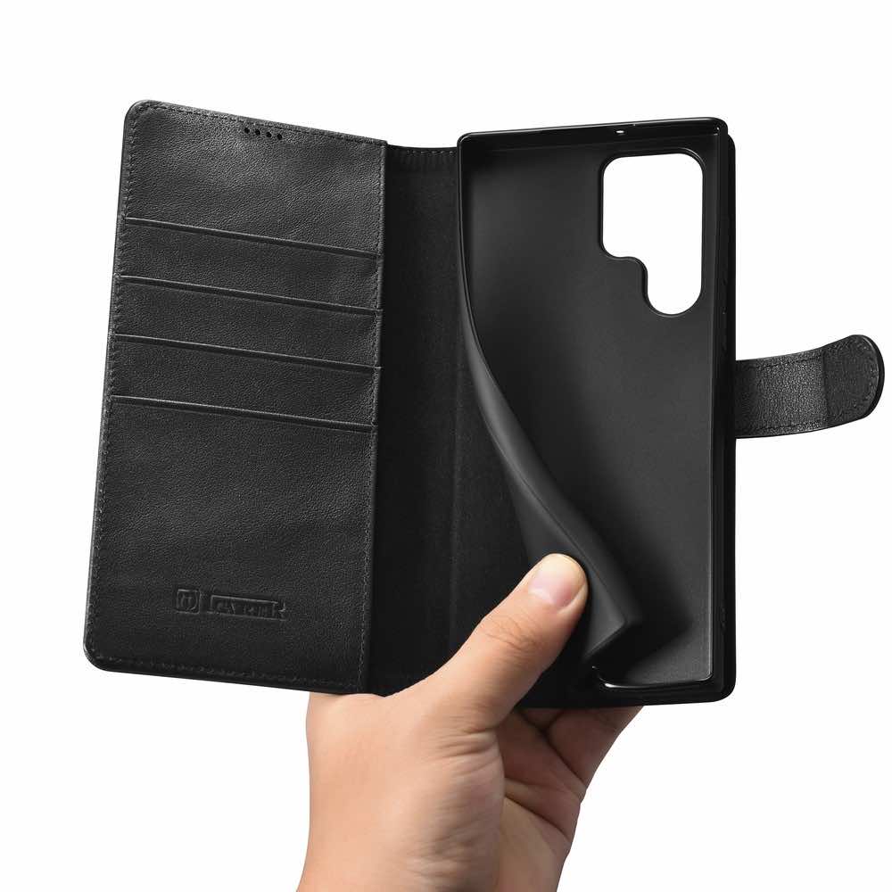 iCarer Haitang Leather Wallet Case - кожен (естествена кожа) калъф, тип портфейл за Samsung Galaxy S22 Ultra (черен)