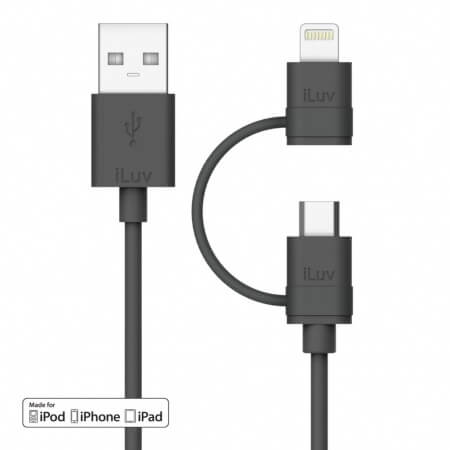 iLuv Combo 2-in-1 Lightning and MicroUSB Cable - USB кабел 2в1 за Lightning и MicroUSB устройства (черен)