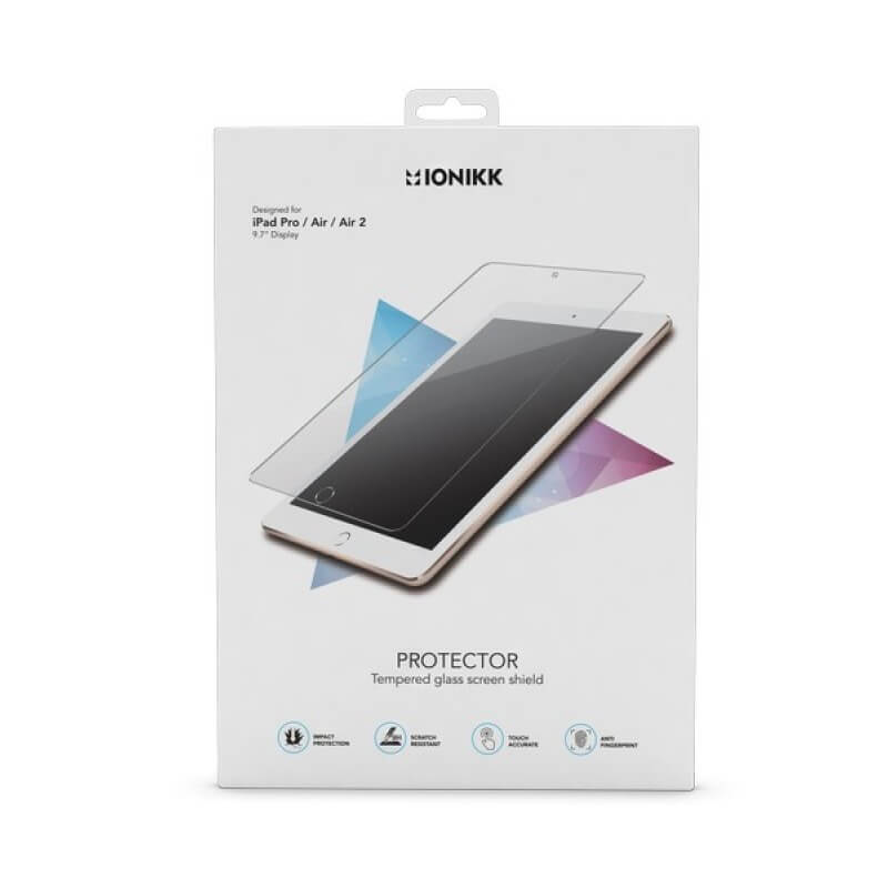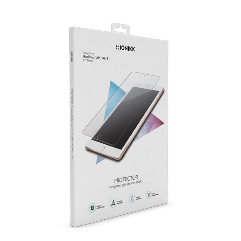 IONIKK Tempered Glass Screen Protector - калено стъклено защитно покритие за дисплея на iPad Air 2, iPad Pro 9.7, iPad Air (прозрачен)
