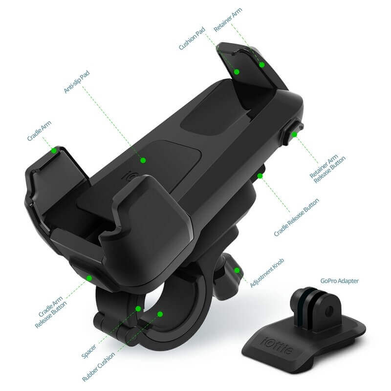 iOttie Active Edge Bike Mount with GoPro Adapter - поставка за велосипеди, мотоциклети, скутери и др. с адаптер за GoPro (черен)