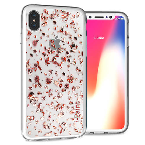 iPaint Glitter Flakes Case - дизайнерски поликарбонатов кейс с TPU рамка за iPhone XS, iPhone X (прозрачен-розов)