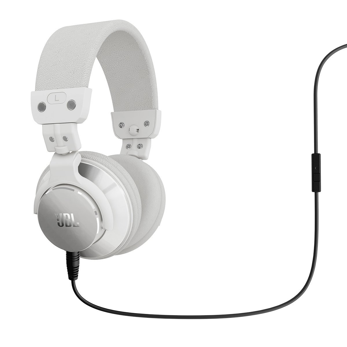 JBL Bassline Over-Ear - DJ-ски слушалки с микрофон и управление на звука за iPhone, iPod, iPad и мобилни устройства (бели)