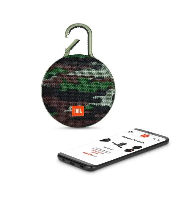 JBL Clip 3 Squad - водоустойчив безжичен портативен спийкър (с карабинер) с микрофон за мобилни устройства (камуфлаж)
