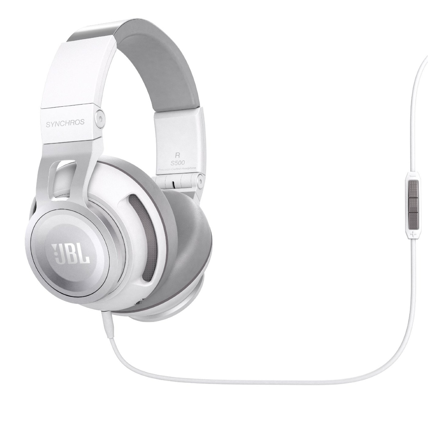 JBL Synchros S500 Over-Ear - слушалки с микрофон и управление на звука за iPhone, iPod, iPad и мобилни устройства (бял)