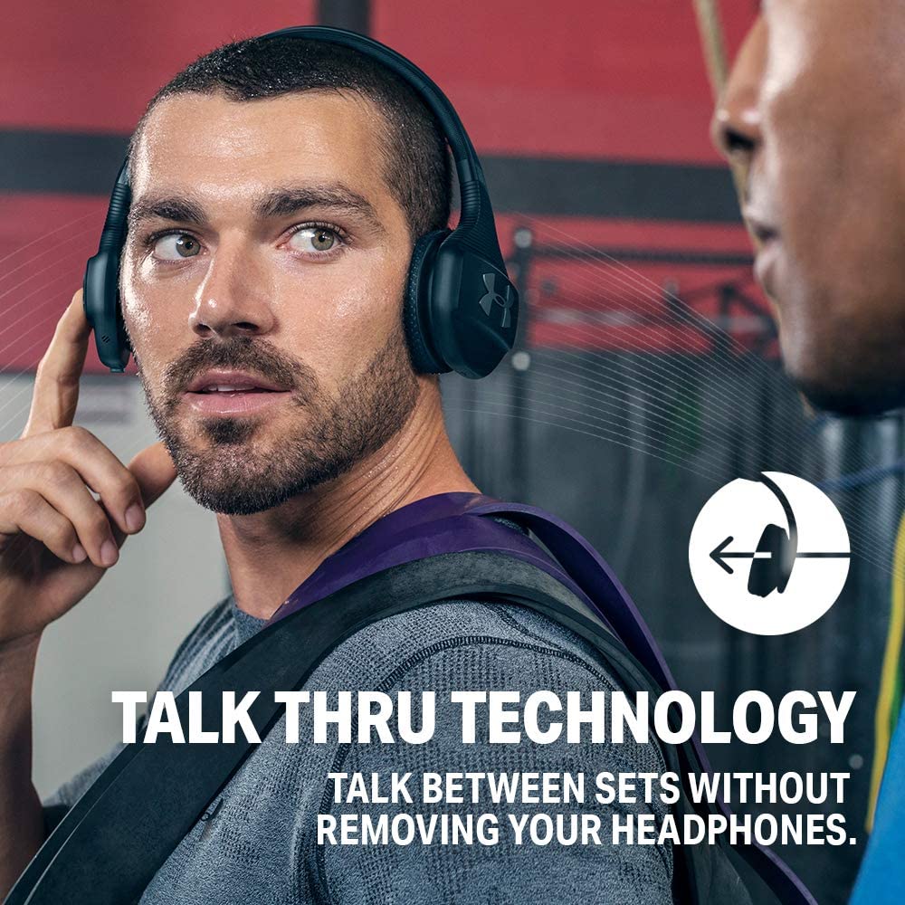 JBL Under Armour Project Rock Wireless Headphones - безжични Bluetooth слушалки с микрофон за мобилни устройства (син) (JBL FACTORY RECERTIFIED))