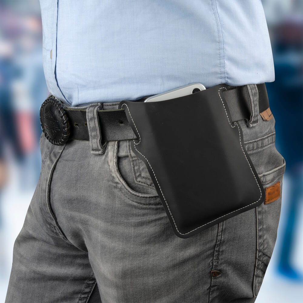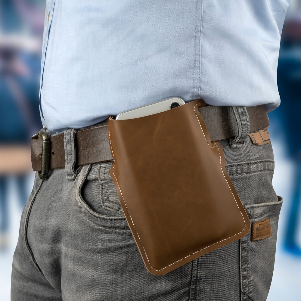 - Елегантен и класически кожен калъф за мобилни телефони за поставяне на колан
