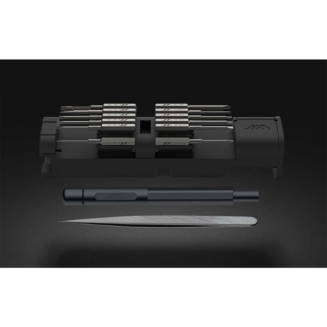 - Комплектът включва държач, 14 накрайника, пинсети и здрав калъф с магнетизатор и огранайзер