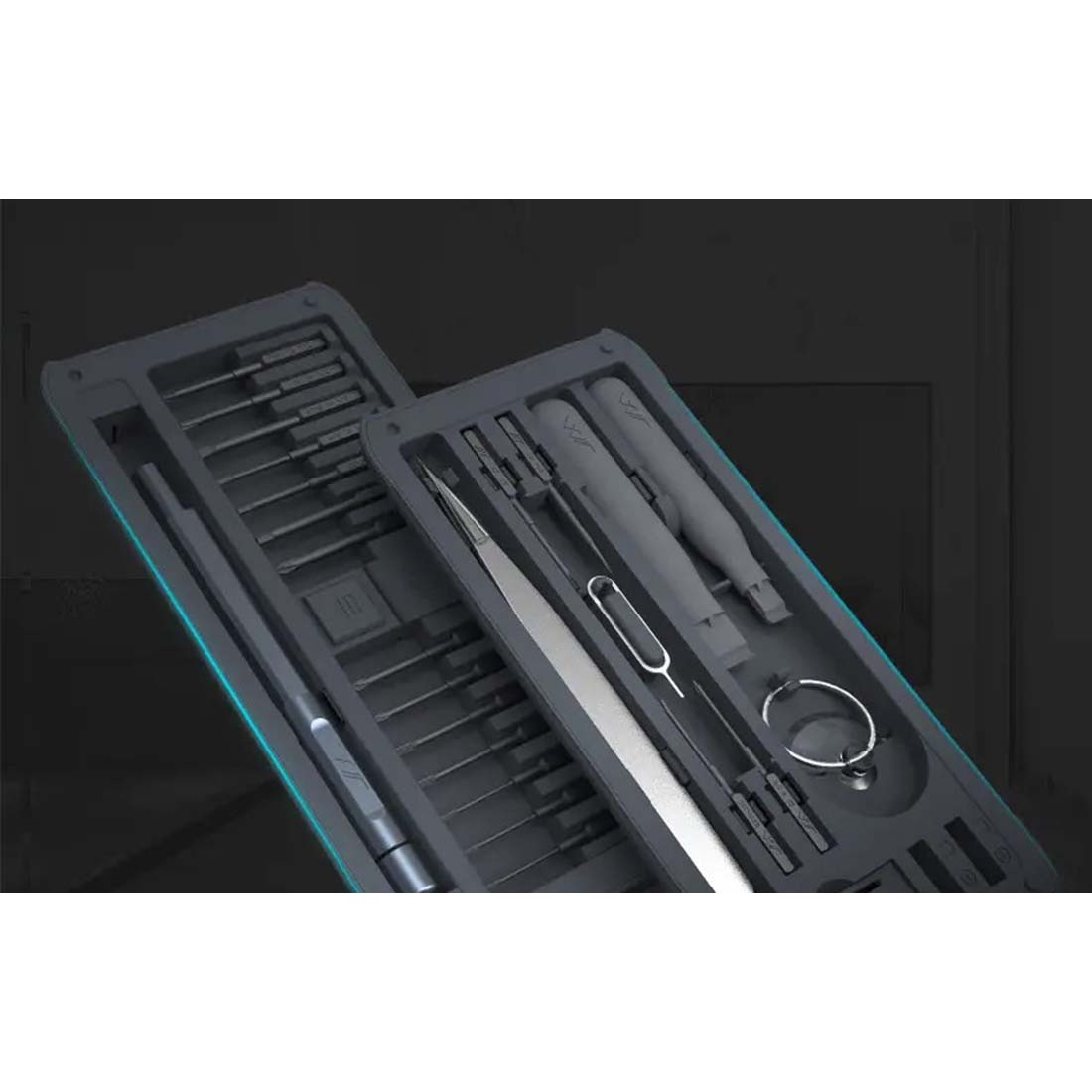 - Комплектът JM-GNT26 включва 18 различни накрайника, пинсети от неръждаема стомана, 2 пластмасови клещи, вендуза, инструмент за изваждане на SIM карта, магнетизатор/демагнетизатор и калъф за съхранение