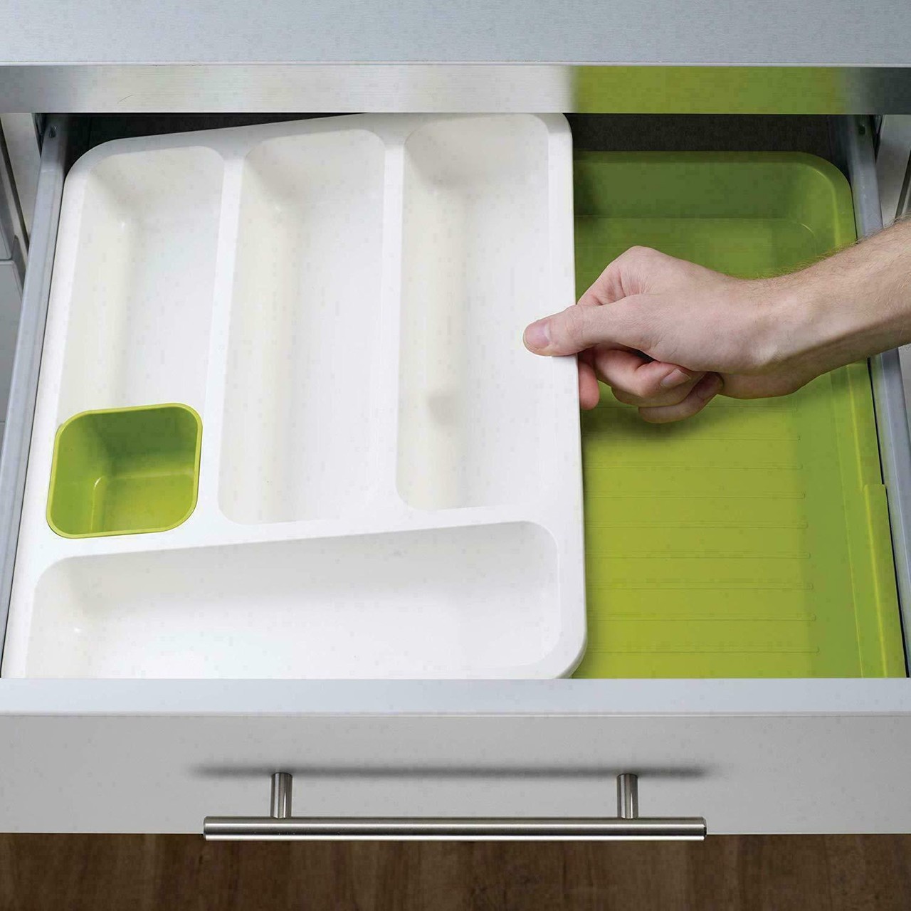 Joseph-Joseph DrawerStore Cutlery Tray - огранайзер (табла) за съхранение на кухненски прибори (бял-зелен)