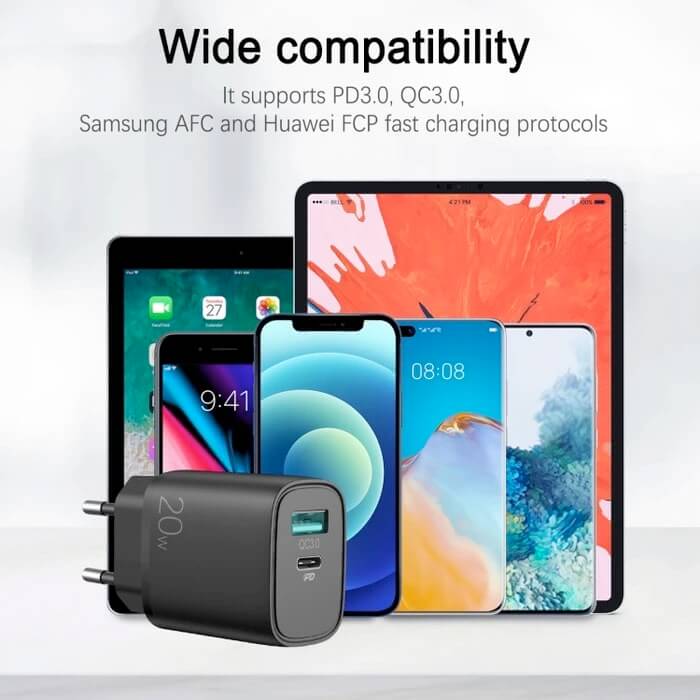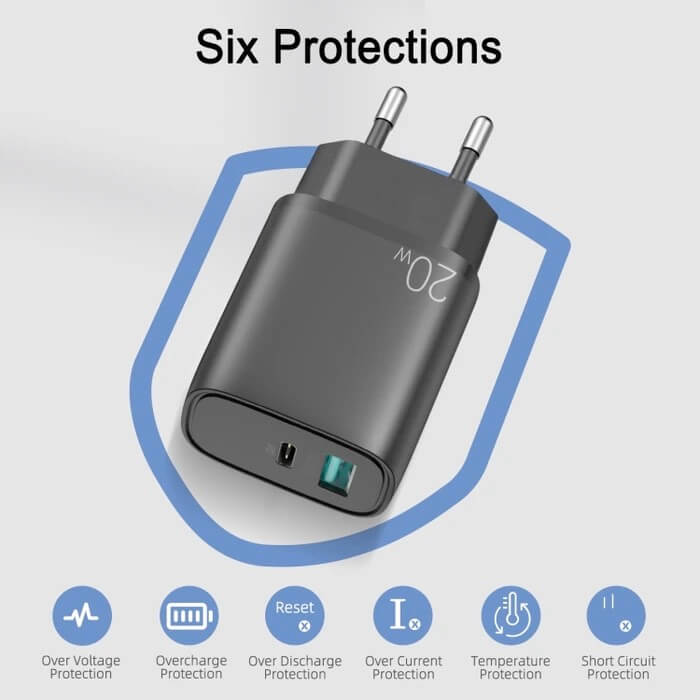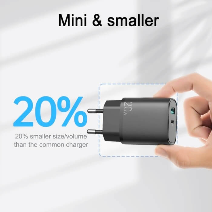 - Модел: Dual Port Fast Charger 20W with Quick Charge and PD