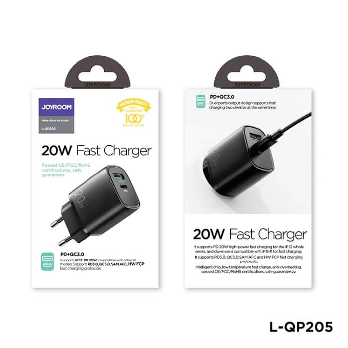 - 1 x Joyroom Dual Port Fast Charger 20W with Quick Charge and PD