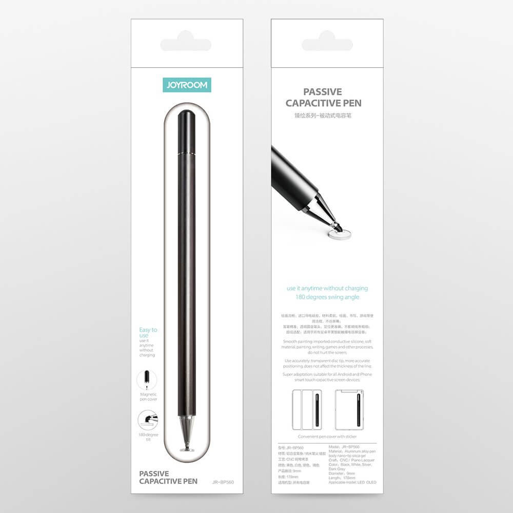 - 1 x Joyroom Excellent Series Passive Capacitive Pen - 2 x допълнителен връх за писалката - 1 x ръководство за употреба