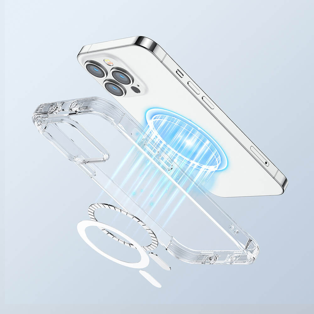 - MagSafe функционалност - кейсът е свграден магнит, благодарение на който е съвместим с всички MagSafe аксесоари.По този начин лесно с едно докосване свързвате безжично зарядно или друг MagSafe аксесоар