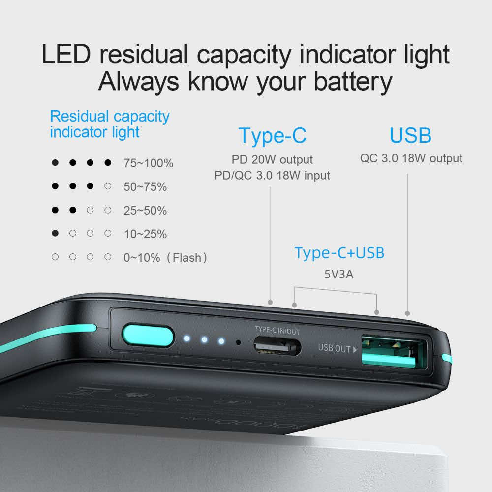 - Капацитет: 10000 mAh (3.85V, 38.5Wh)