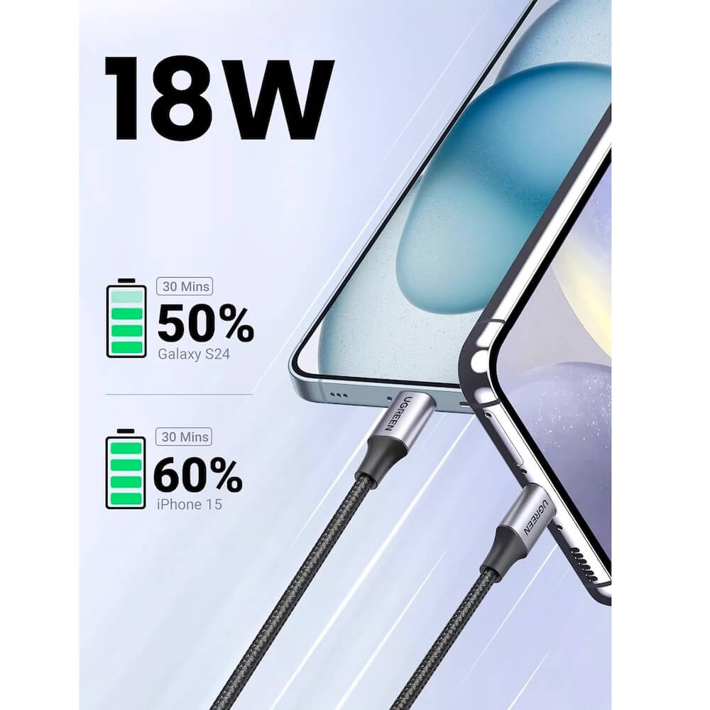 - В комплекта: 1 х Ugreen Cafule USB-A to USB-C Cable 18W