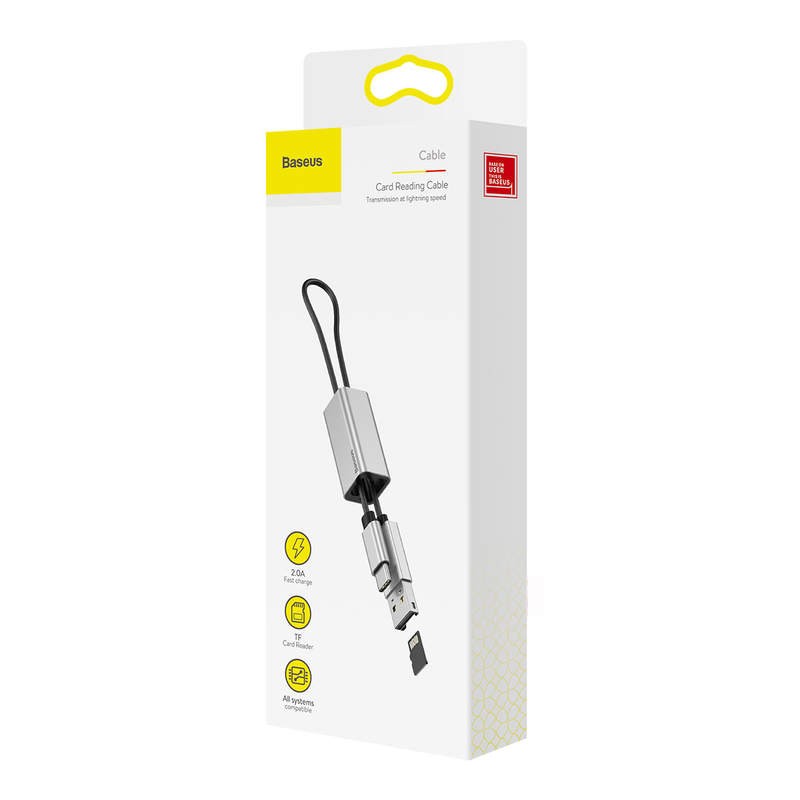 Кабел USB-A към USB-C с четец за microSD карти памет за мобилни устройства - Baseus Card Reading Cable USB-C & USB-A Memory Card Reader (сребрист)