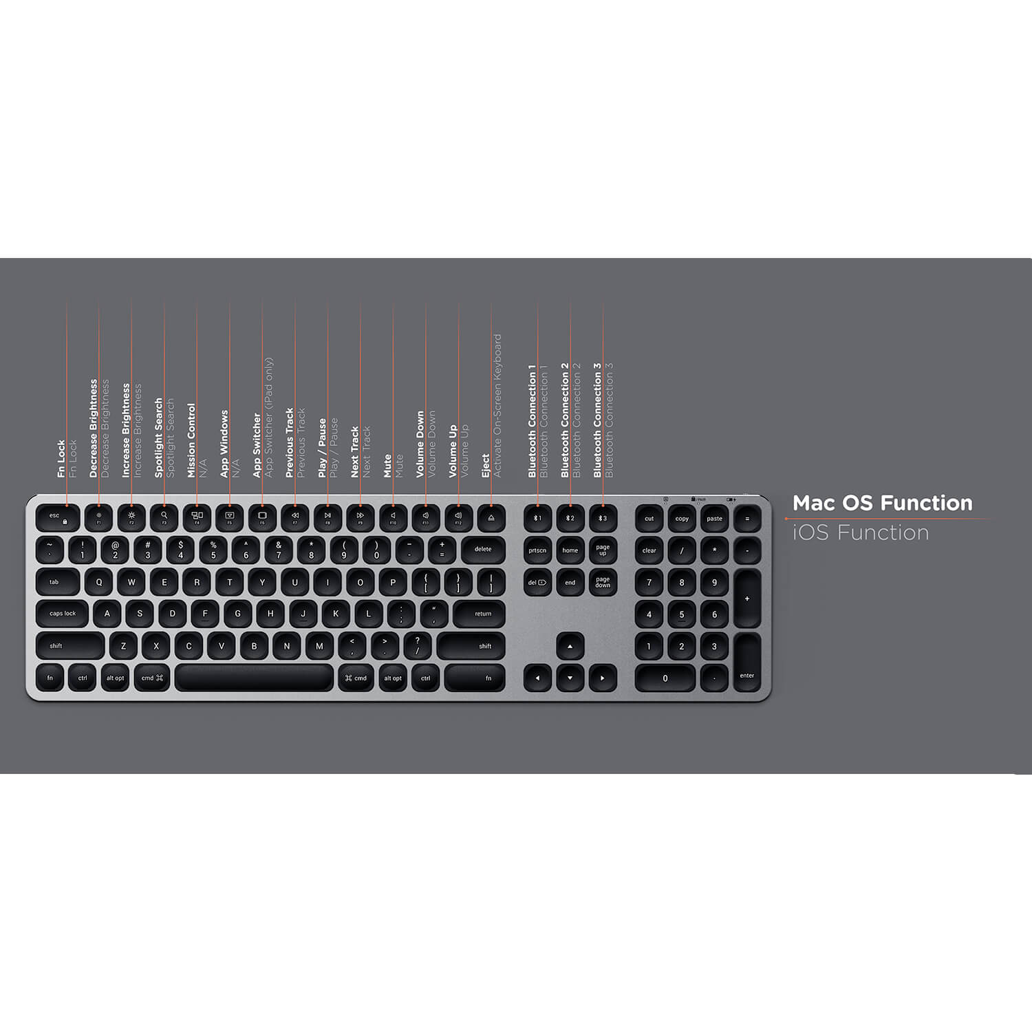 Качествена алуминиева безжична блутут клавиатура за Mac - Satechi Aluminum Wireless Keyboard with Numeric Keypad (тъмносив)