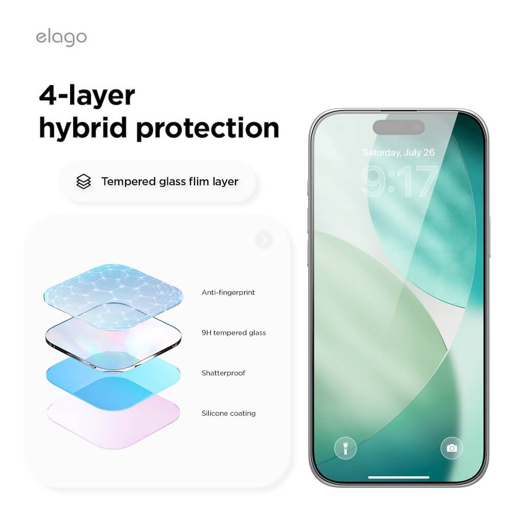Създаден с внимание към детайла, Elago Tempered Glass Protector осигурява максимална защита с дебелина от само 0.30 мм и 2.5D заоблени ръбове. Той е изключително здрав с оценка 9H по скалата на Mohs, което го прави устойчив на надрасквания и удари. Протекторът е чисто прозрачен и не влияе на качеството на дисплея, осигурявайки висока прозрачност и чувствителност при допир.