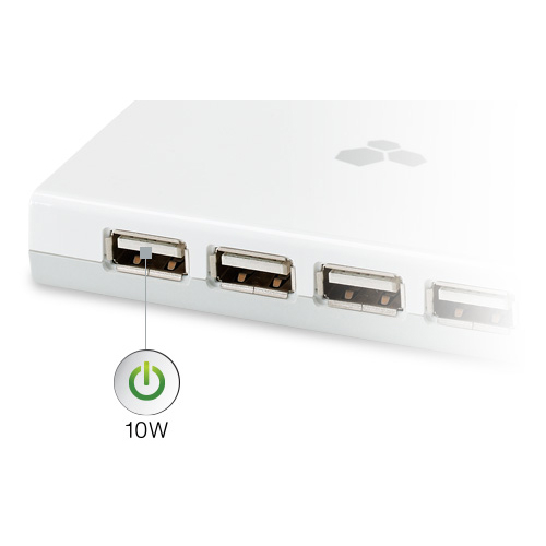 • Първият USB порт притежава 2.1А (10W), като чрез него може да зареждате и таблет, но за целта трябва да сте свързали захванването за ел. мрежа, когато USB хъб-а не е включен към компютъра
