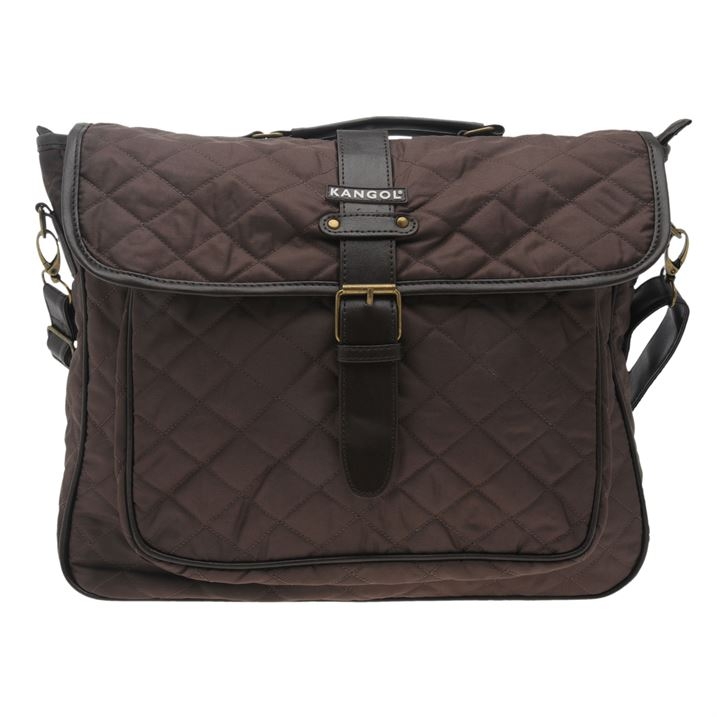 Kangol Quilted Satchel Bag - полиестерна чанта с дръжки и презрамка за преносими компютри до 15.4 инча (кафява)