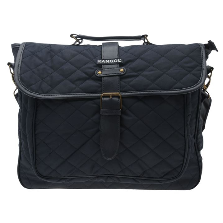 Kangol Quilted Satchel Bag - полиестерна чанта с дръжки и презрамка за преносими компютри до 15.4 инча (тъмносиня)