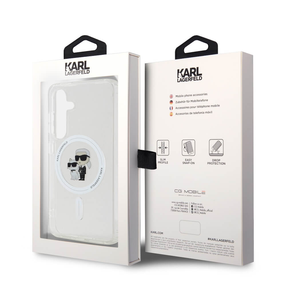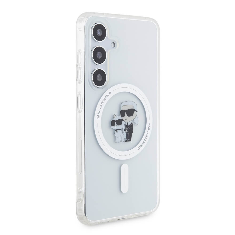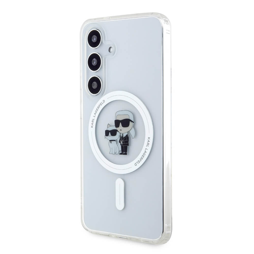 Karl Lagerfeld IML Glitter Karl and Choupette MagSafe Case - дизайнерски силиконов кейс с MagSafe за Samsung Galaxy S24 (прозрачен)