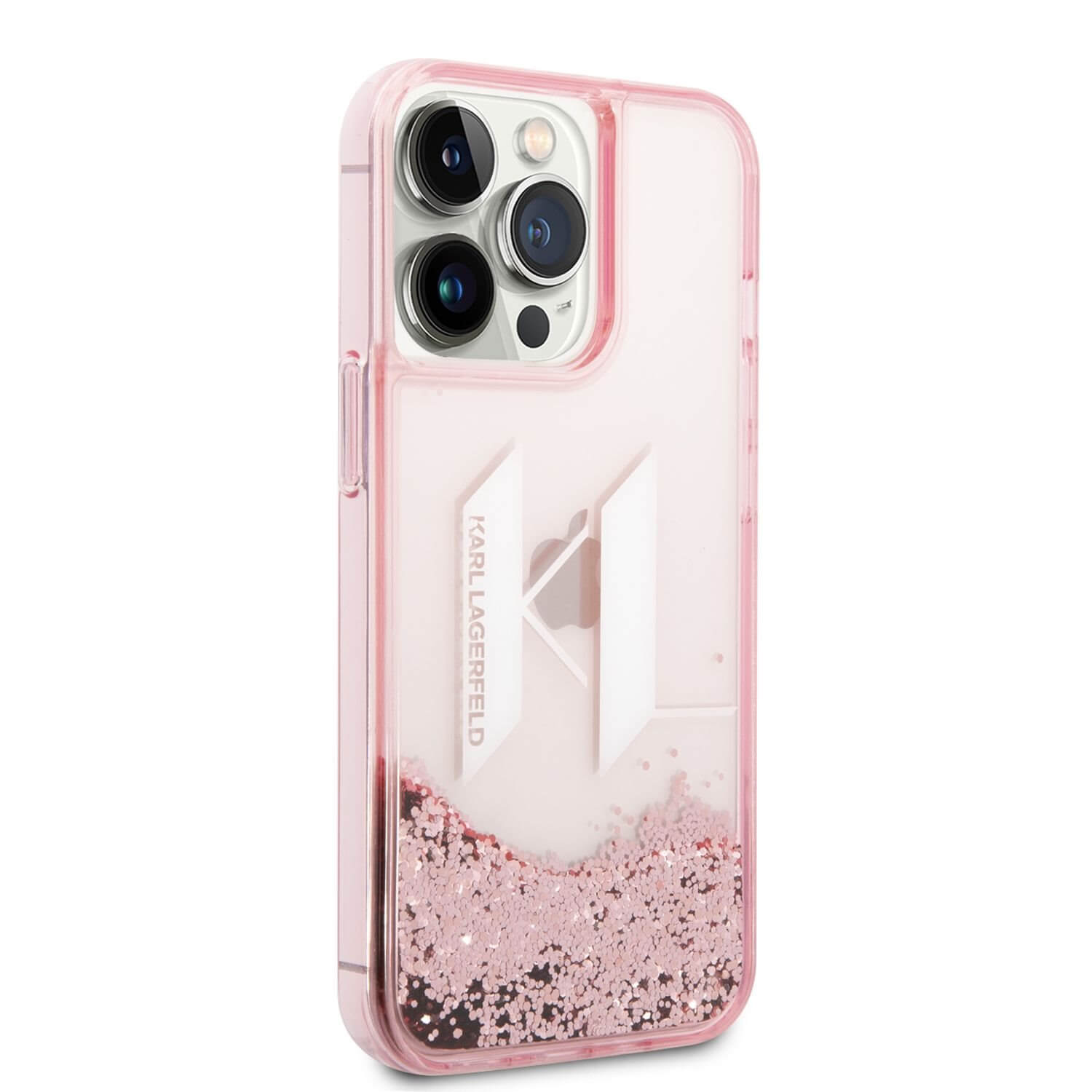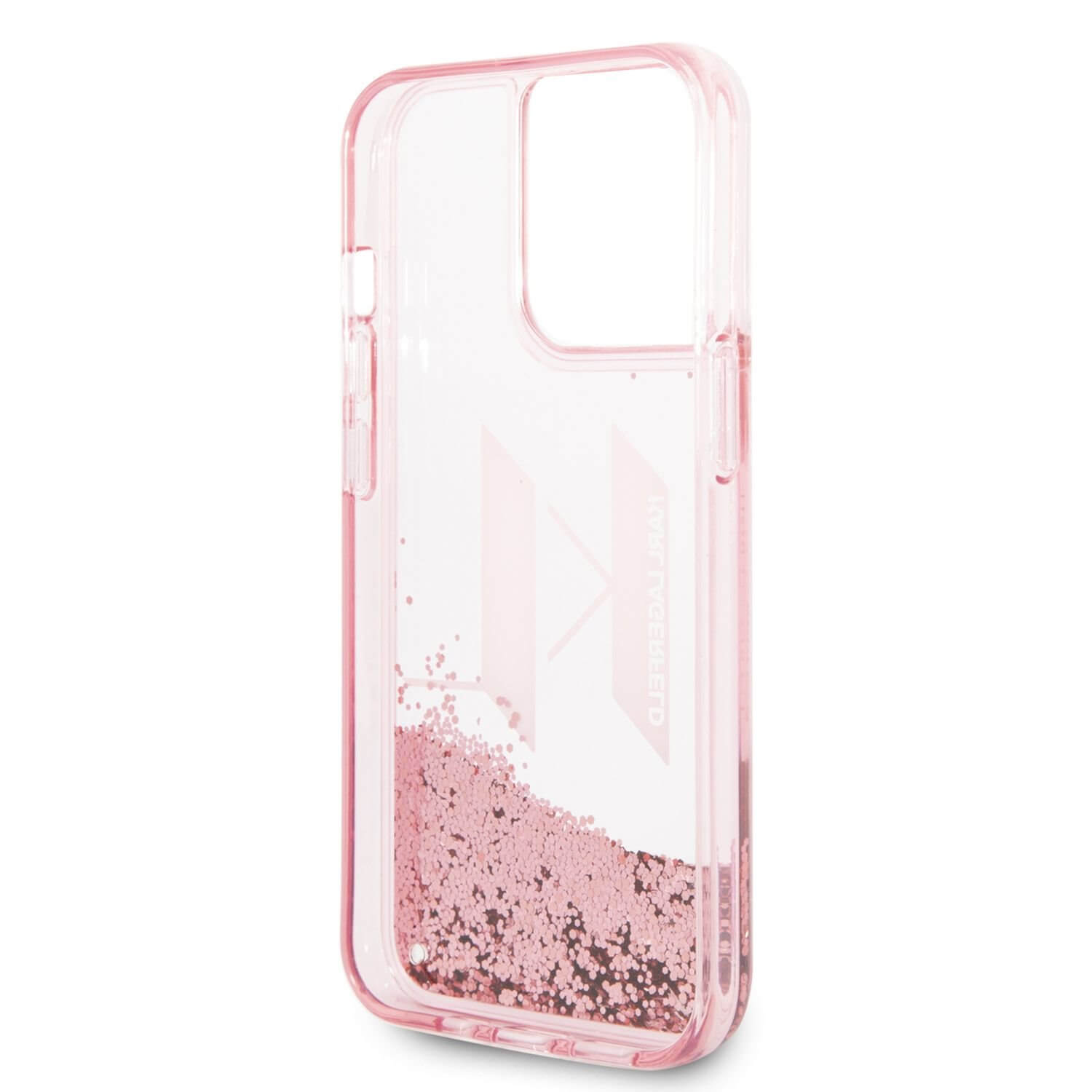 Karl Lagerfeld Liquid Glitter Big KL Logo Case - дизайнерски кейс с висока защита за iPhone 14 Pro Max (прозрачен-розов)