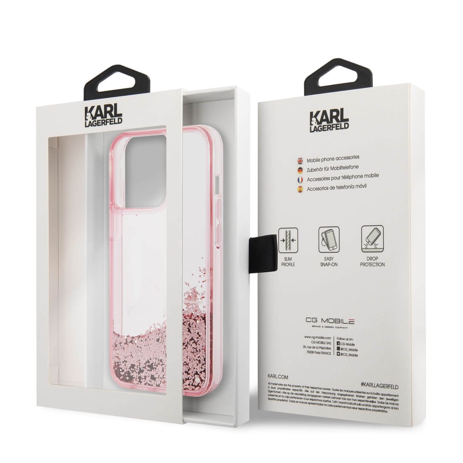 Karl Lagerfeld Liquid Glitter Big KL Logo Case - дизайнерски кейс с висока защита за iPhone 14 Pro (прозрачен-розов)