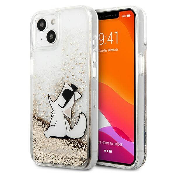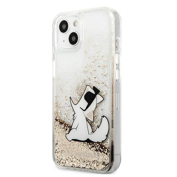 Karl Lagerfeld Liquid Glitter Choupette Fun Case - дизайнерски кейс с висока защита за iPhone 13 mini (прозрачен)