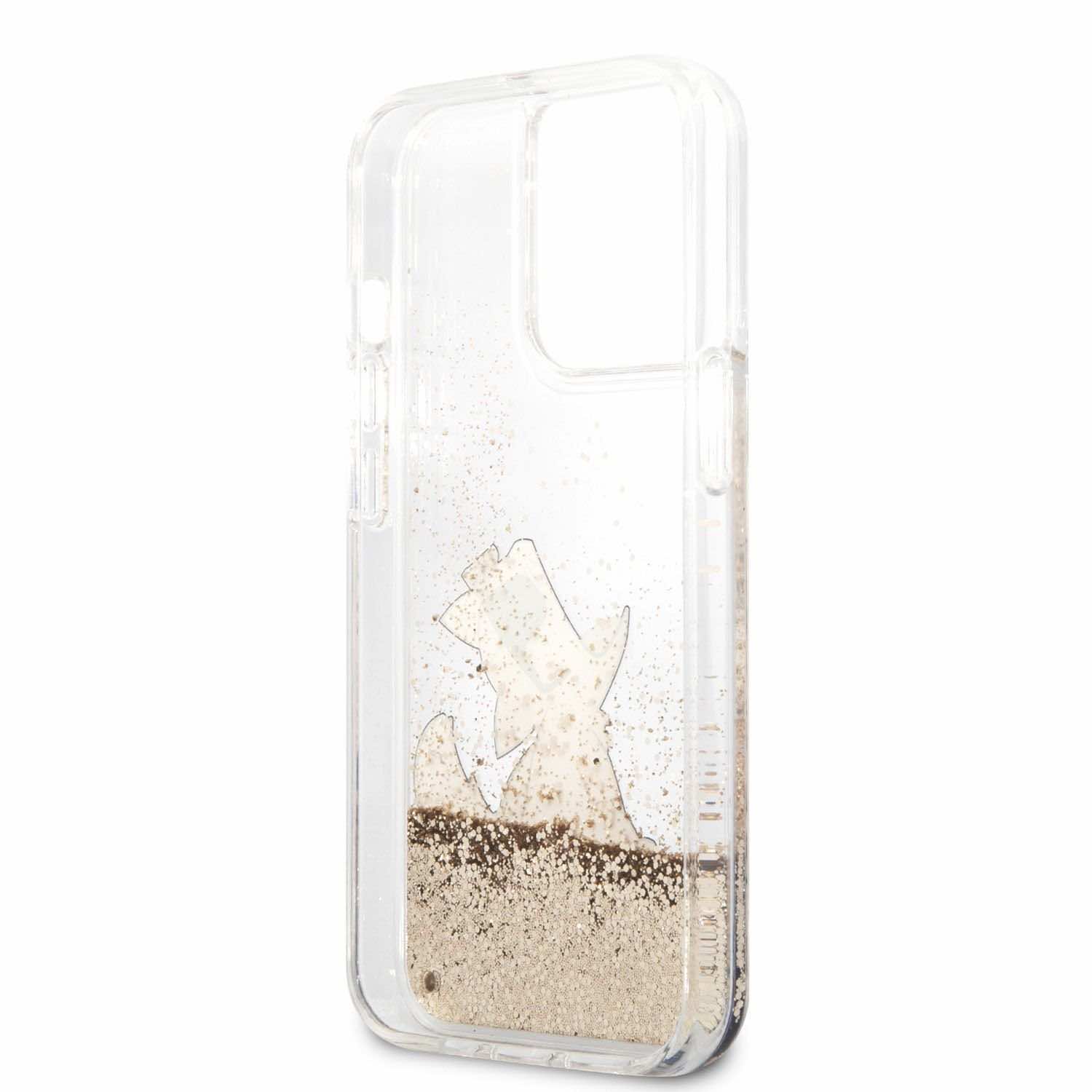Karl Lagerfeld Liquid Glitter Choupette Fun Case - дизайнерски кейс с висока защита за iPhone 13 Pro (прозрачен-златист)