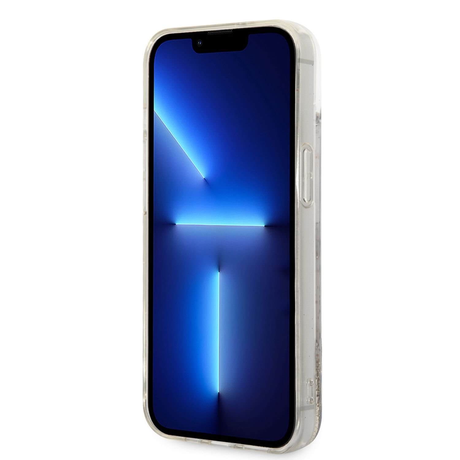 Karl Lagerfeld Liquid Glitter Karl and Choupette Case - дизайнерски кейс с висока защита за iPhone 14 (прозрачен-златист)