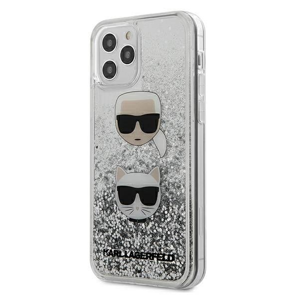 Karl Lagerfeld Liquid Glitter Karl & Choupette Case - дизайнерски кейс с висока защита за iPhone 12, iPhone 12 Pro (сребрист)