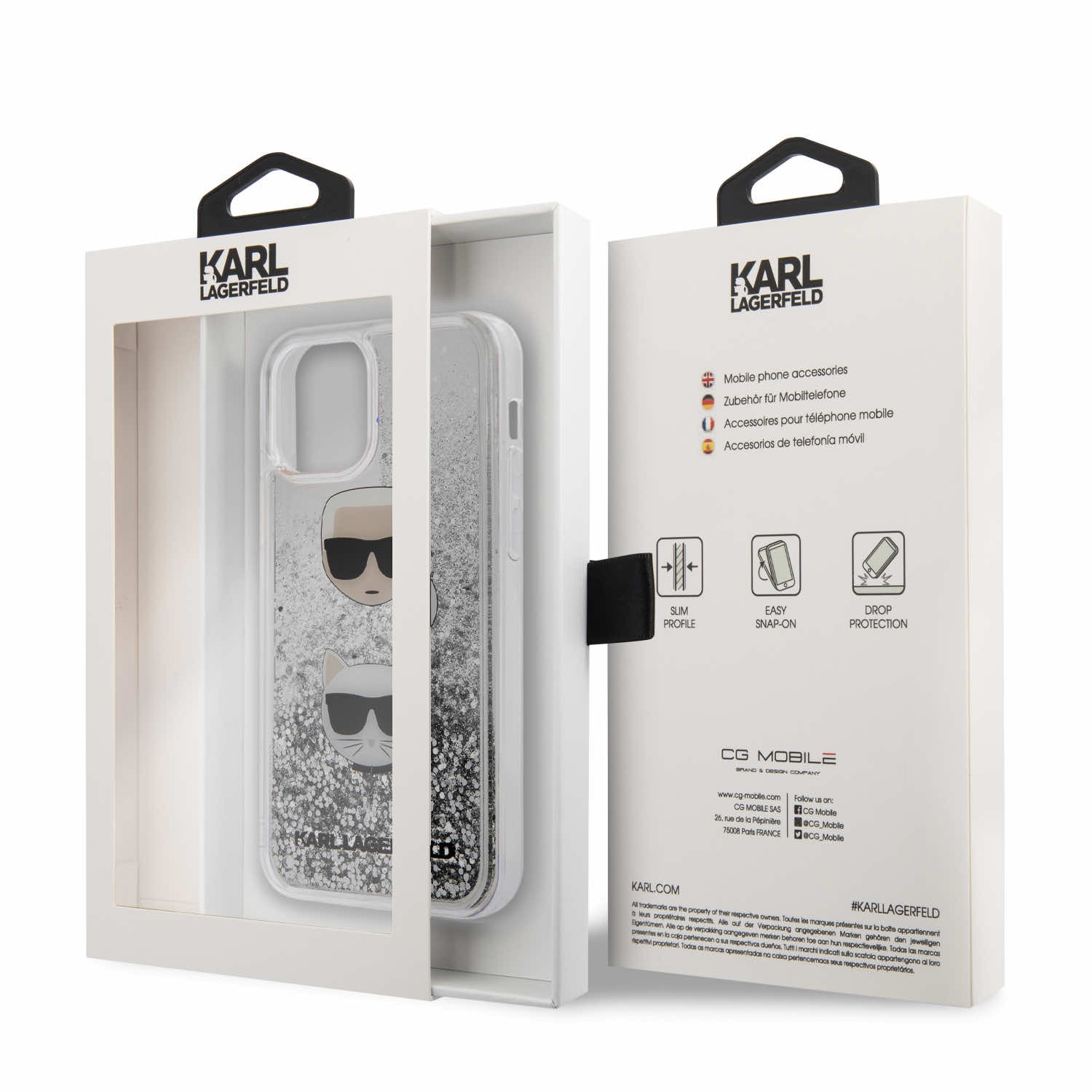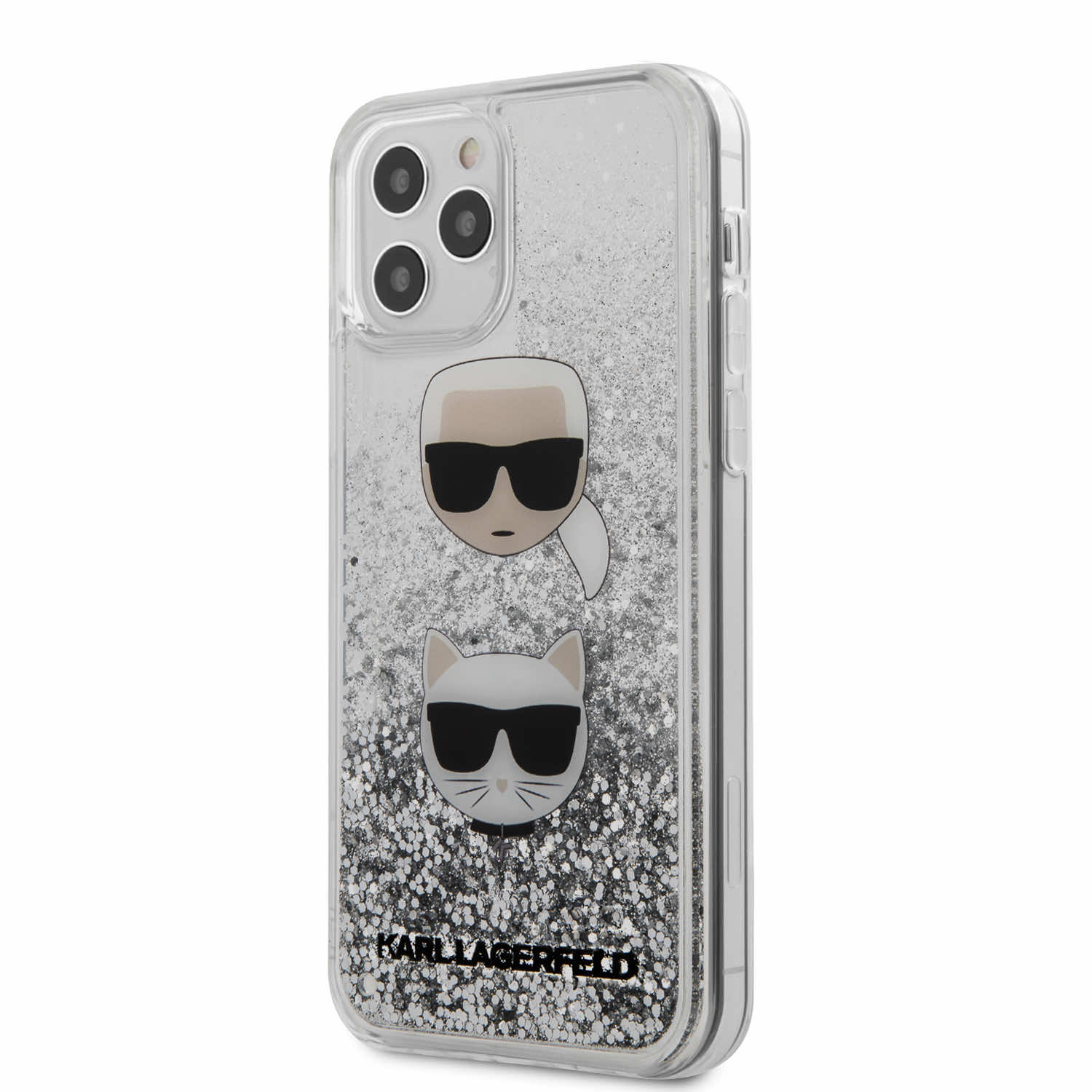 Karl Lagerfeld Liquid Glitter Karl & Choupette Heads Case - дизайнерски кейс с висока защита за iPhone 12 Pro Max (сребрист)