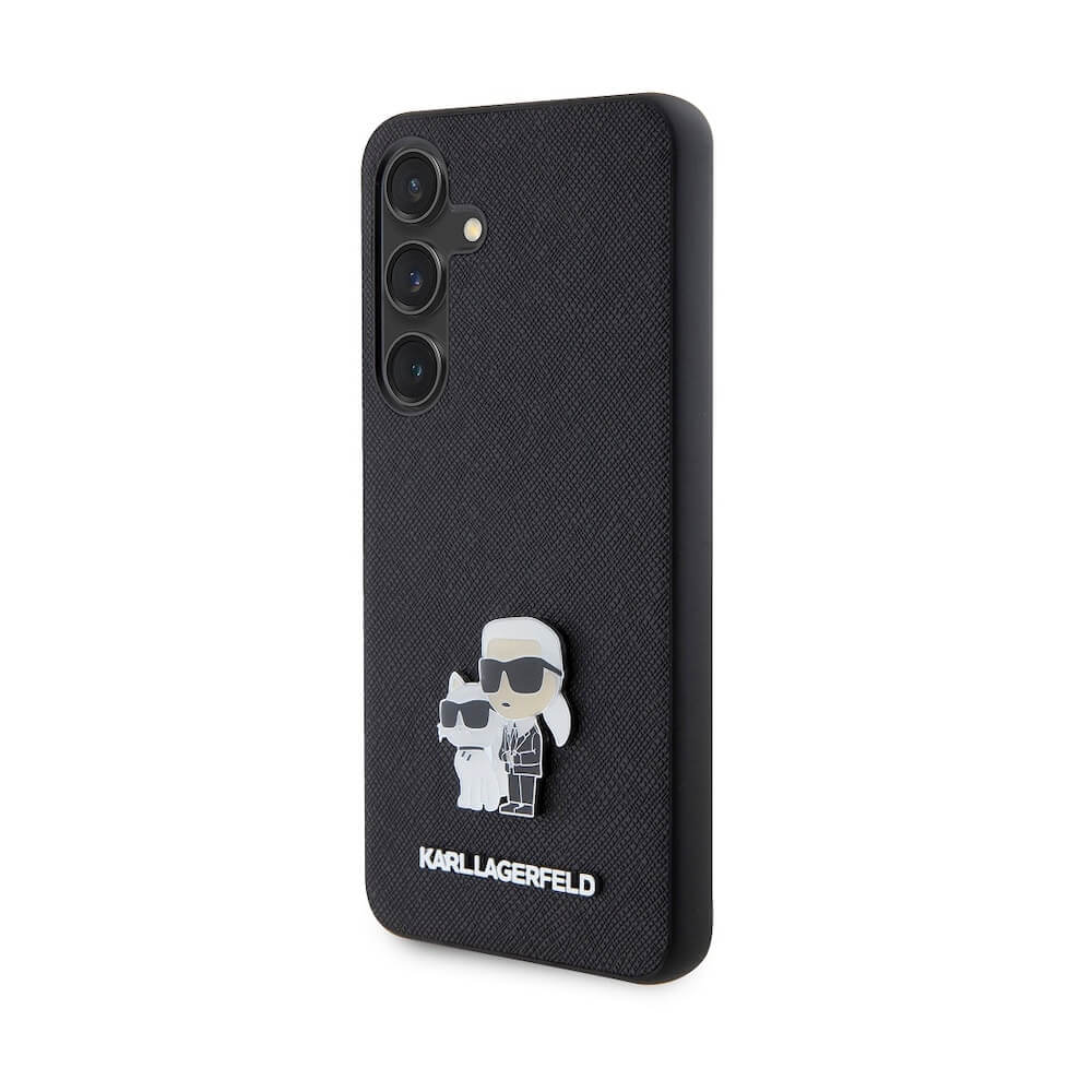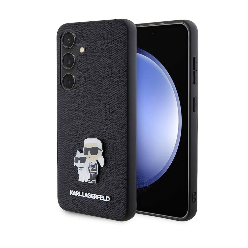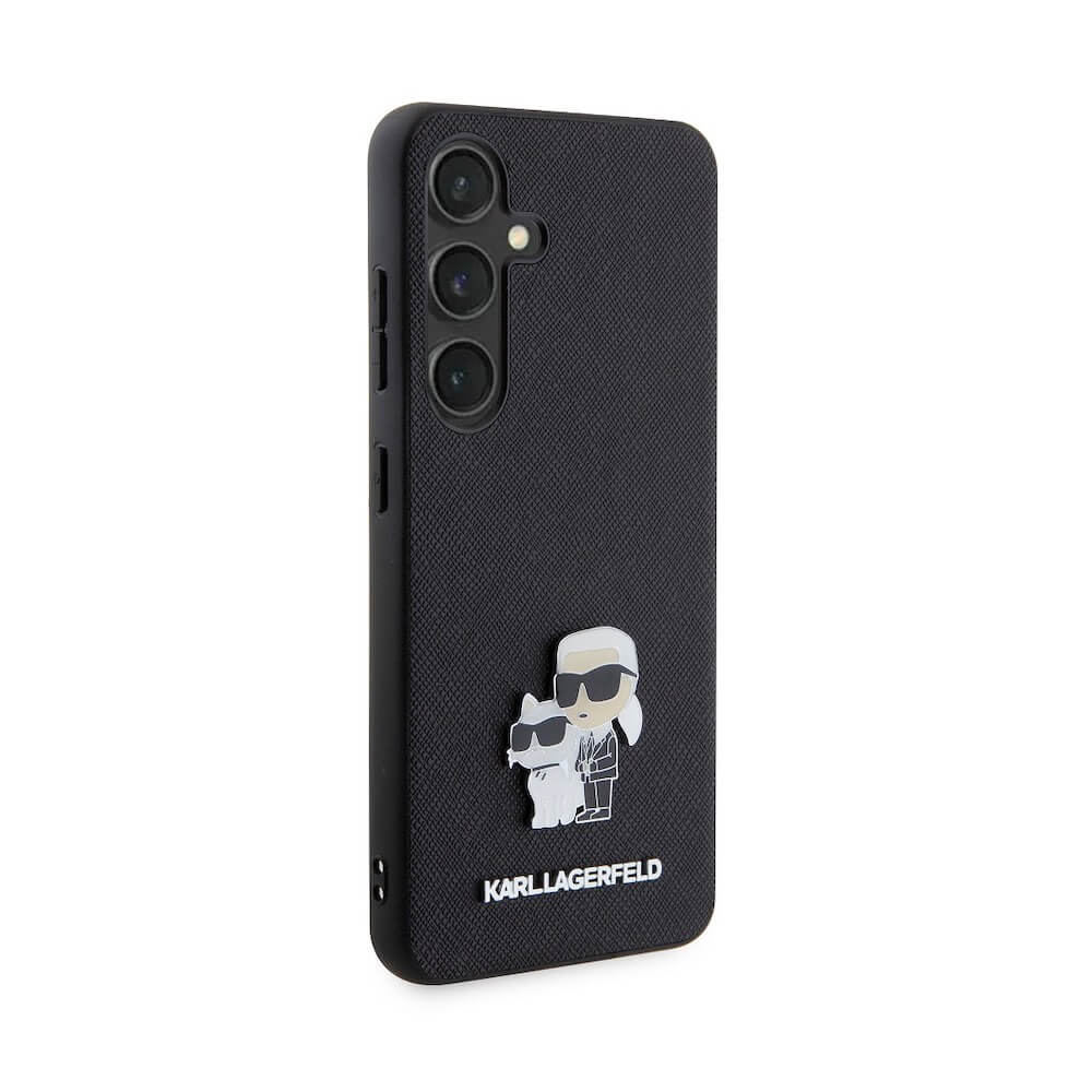 Karl Lagerfeld PU Saffiano Metal Karl and Choupette Case - дизайнерски кожен кейс за Samsung Galaxy S24 (черен)