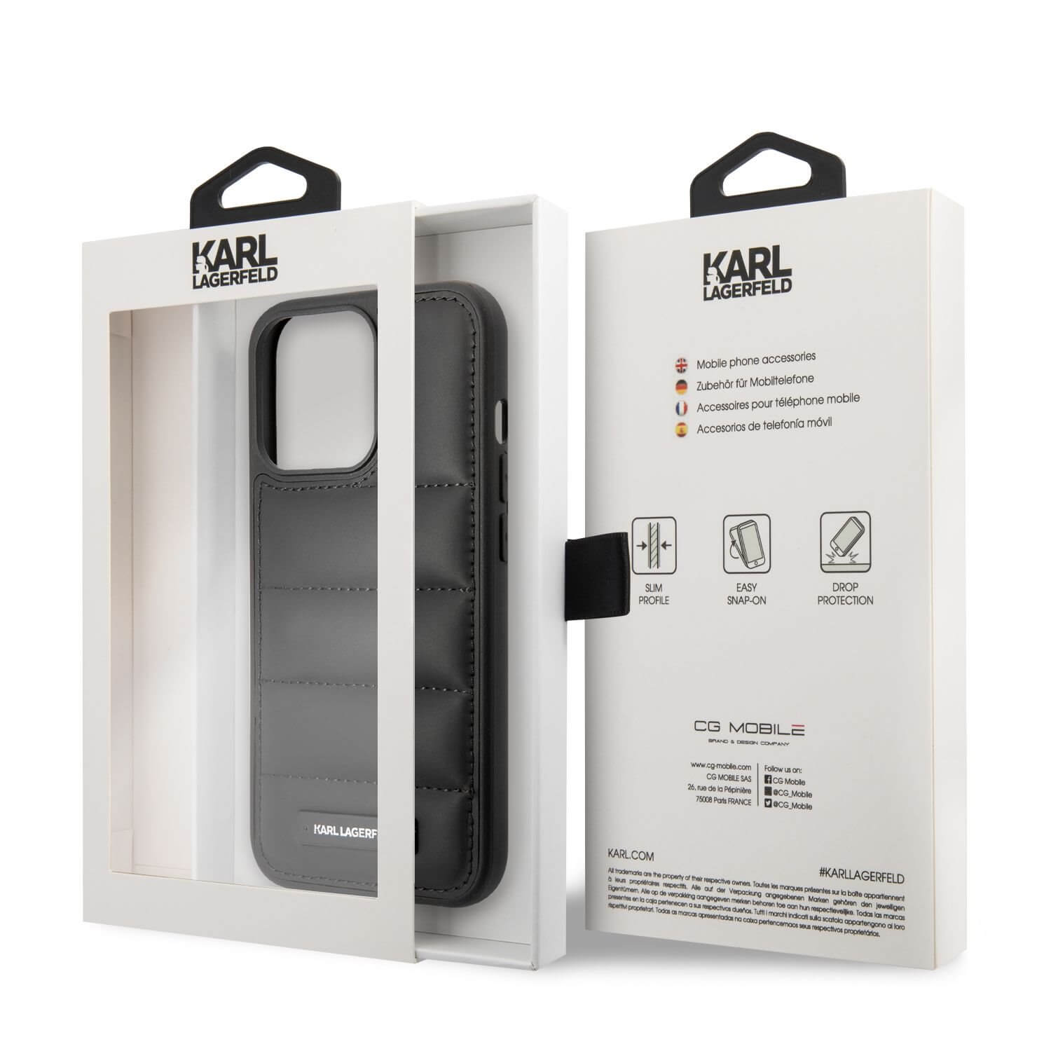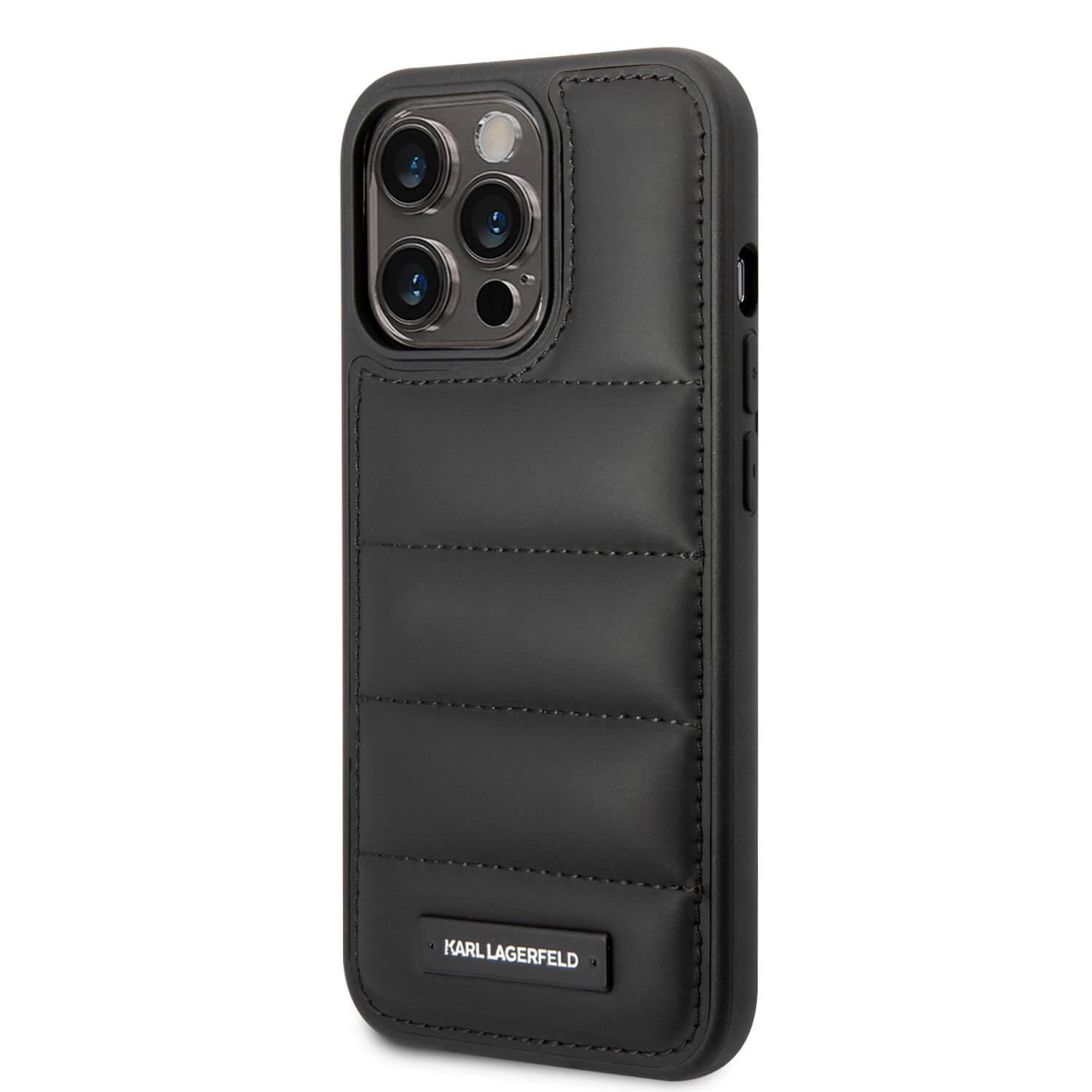 Karl Lagerfeld Quilted Puffy Metal Logo Case - дизайнерски кожен кейс за iPhone 14 Pro (черен)