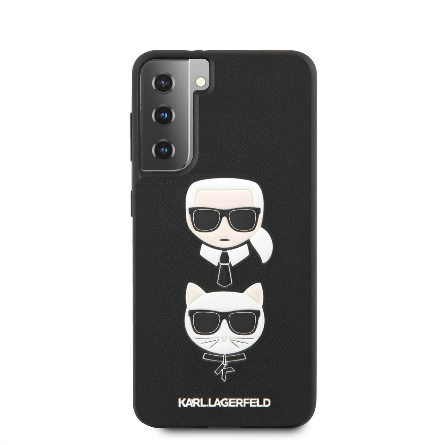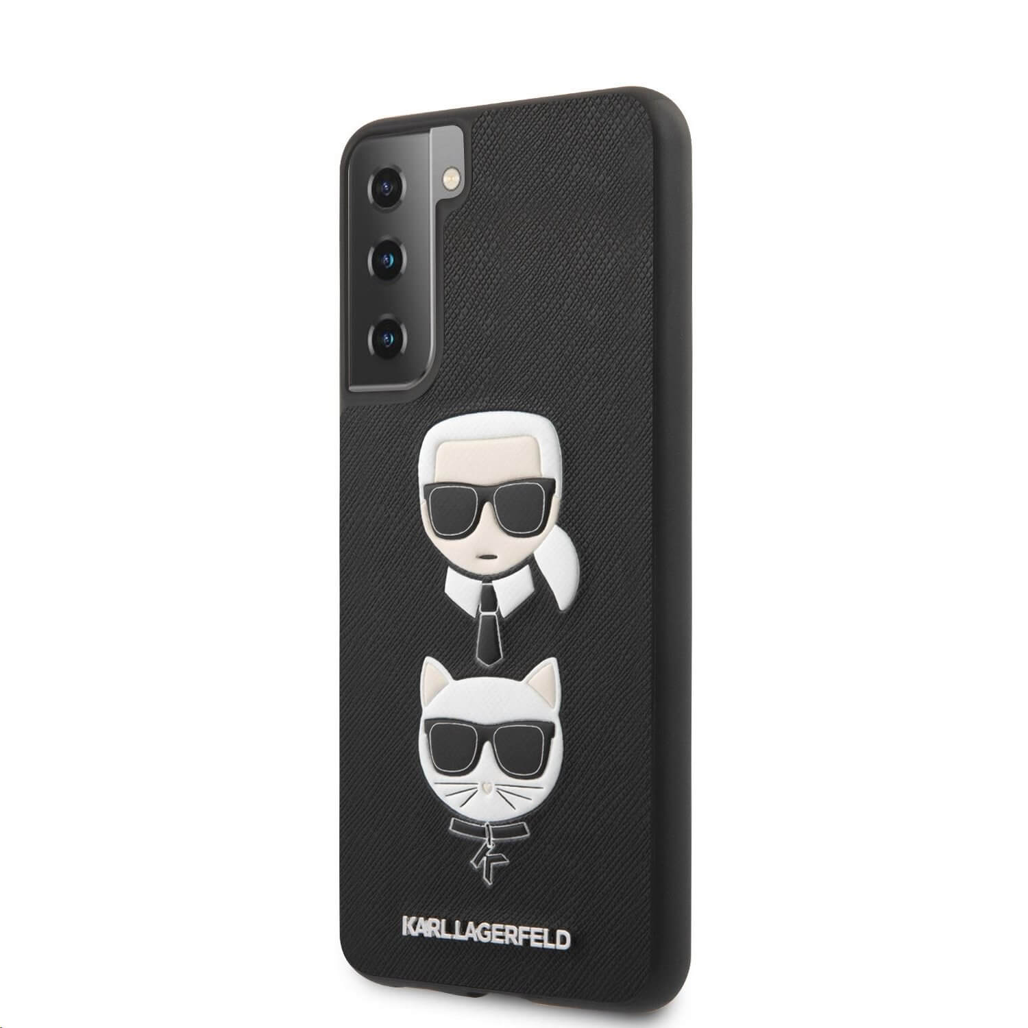 Karl Lagerfeld Saffiano Karl & Choupette Heads Case - дизайнерски кожен кейс за Samsung Galaxy S21 (черен)