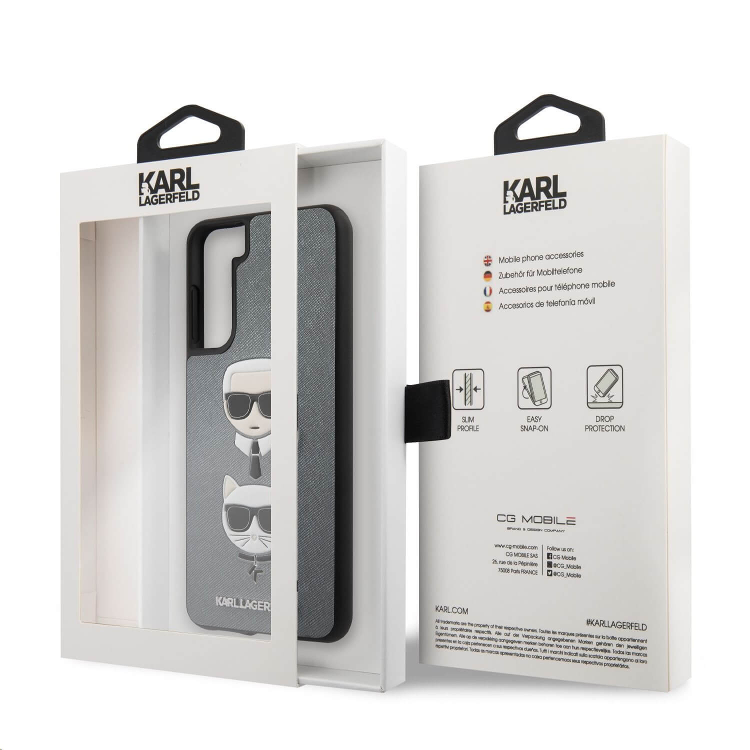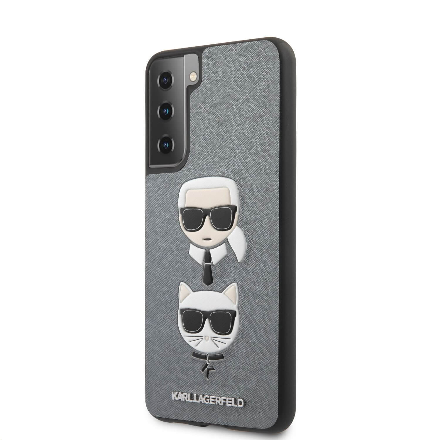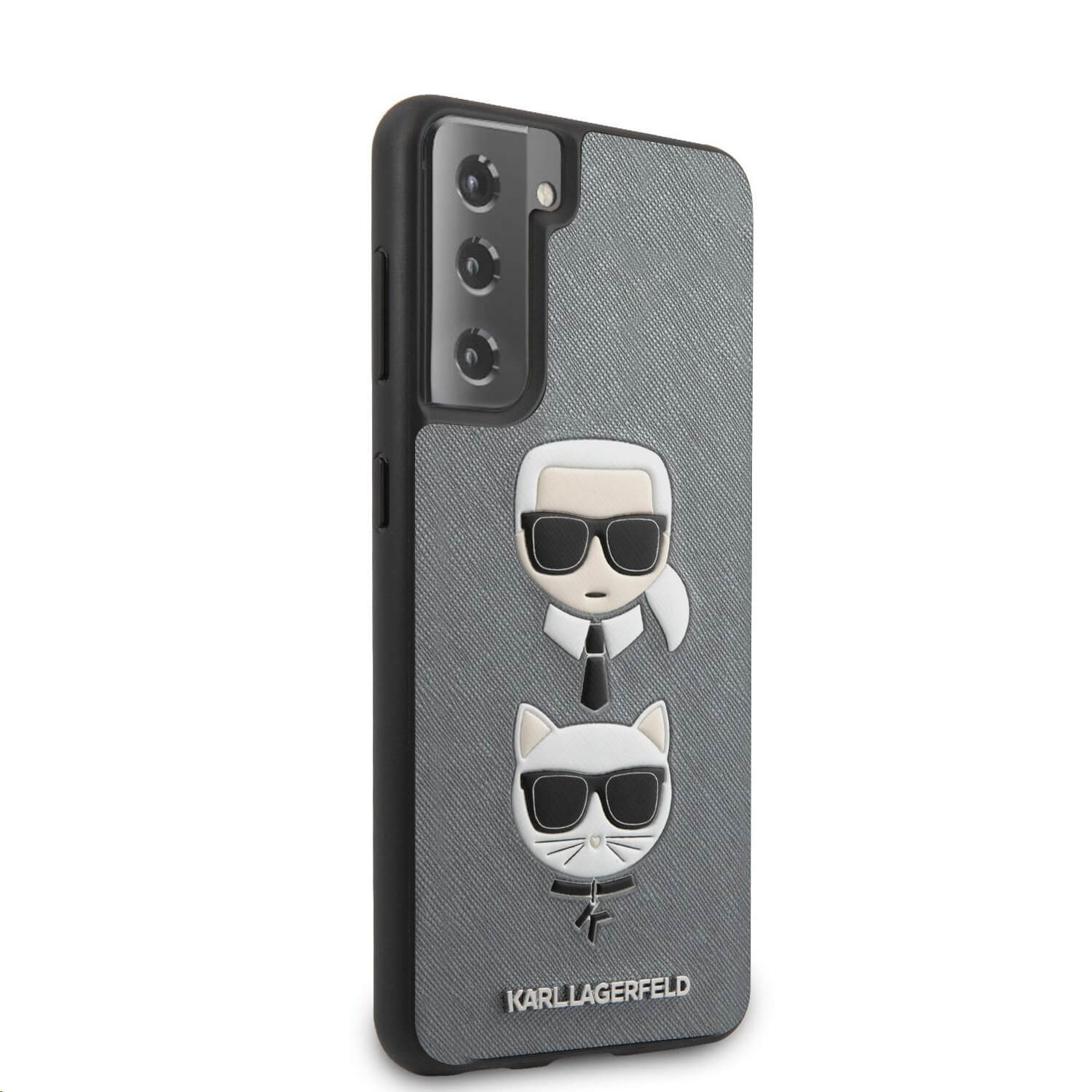 Karl Lagerfeld Saffiano Karl & Choupette Heads Case - дизайнерски кожен кейс за Samsung Galaxy S21 (сребрист)