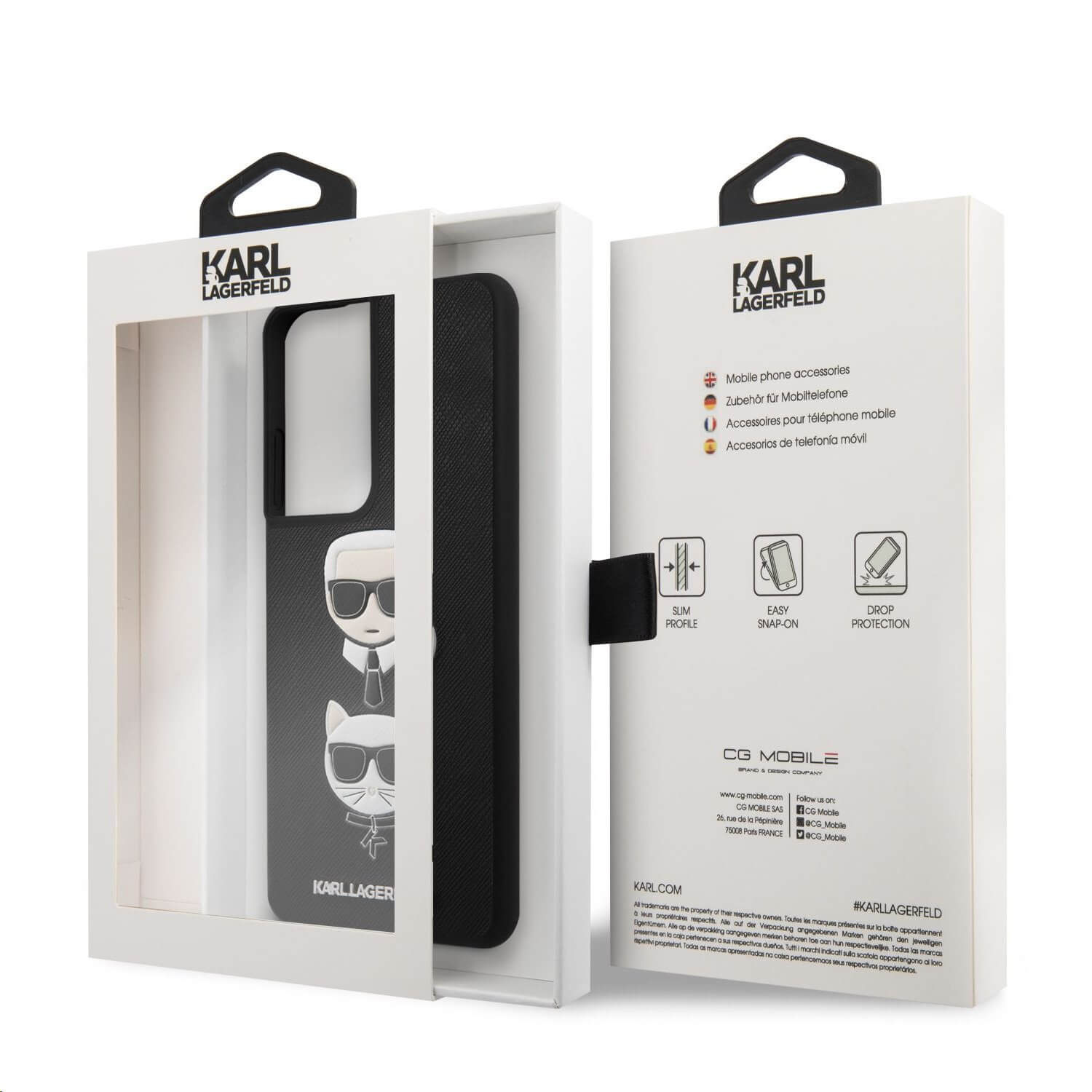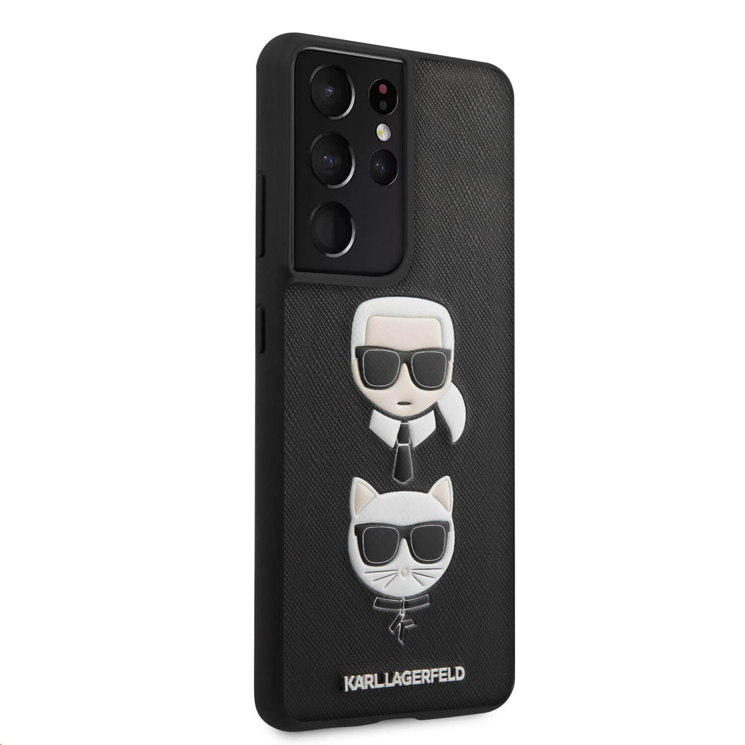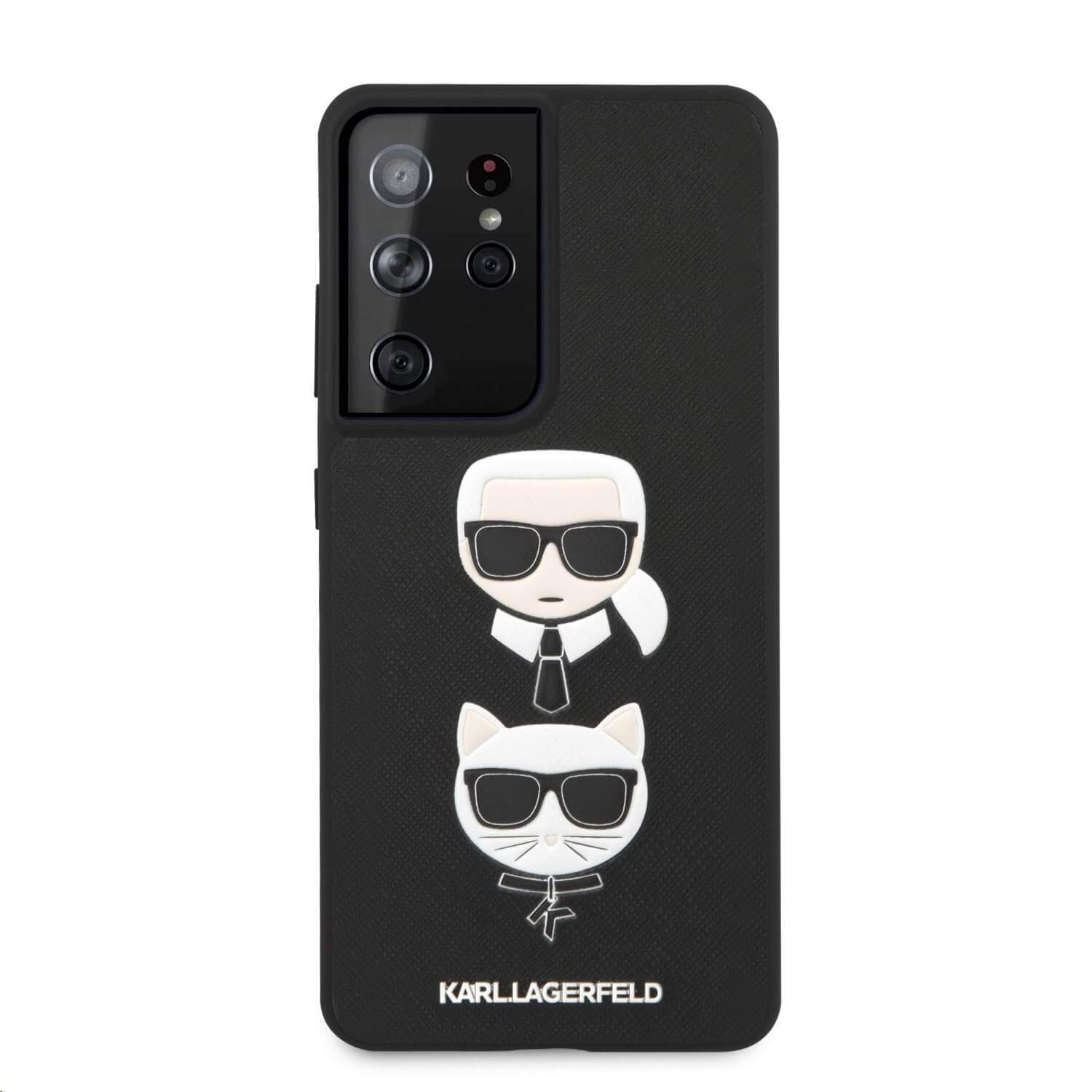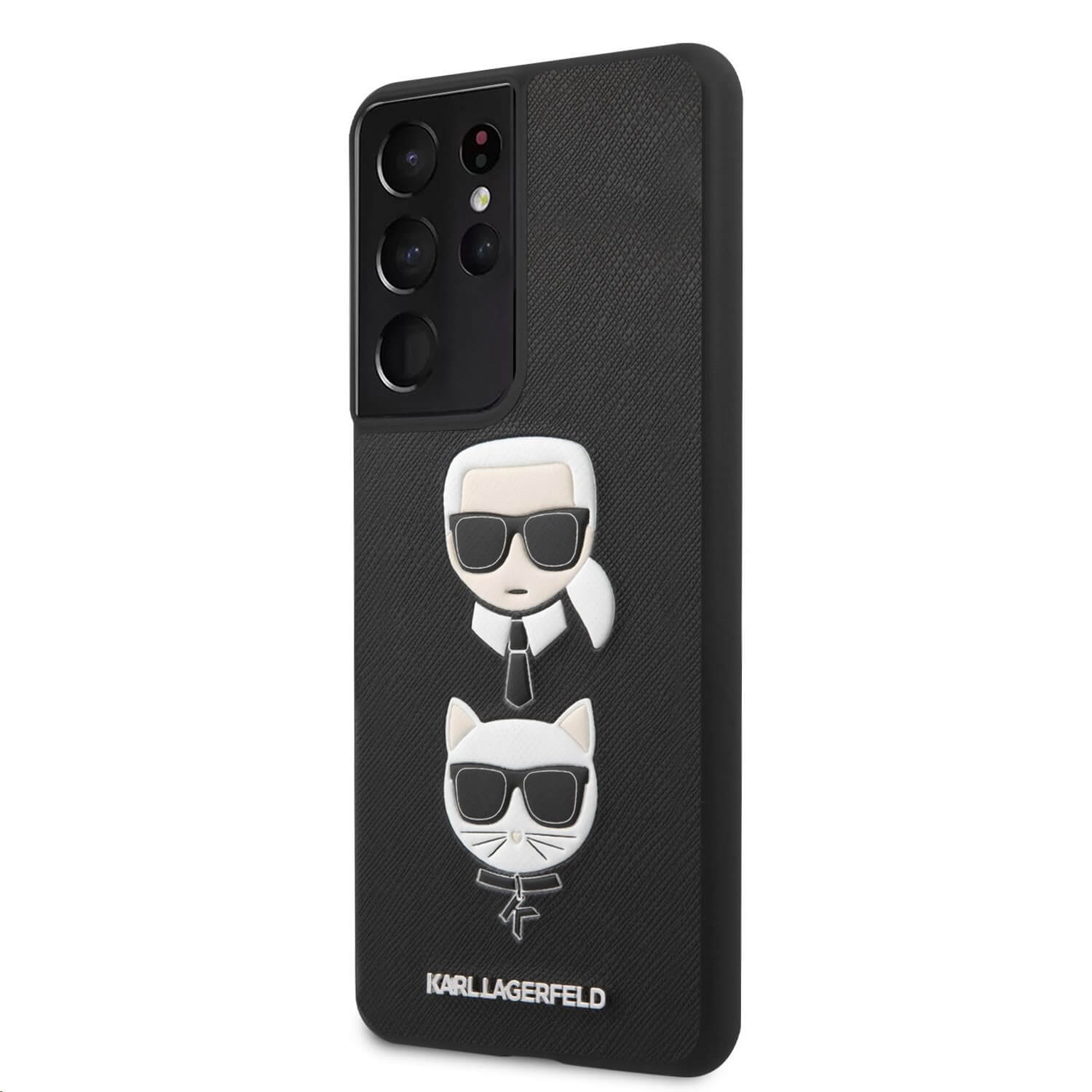 Karl Lagerfeld Saffiano Karl & Choupette Heads Case - дизайнерски кожен кейс за Samsung Galaxy S21 Ultra (черен)
