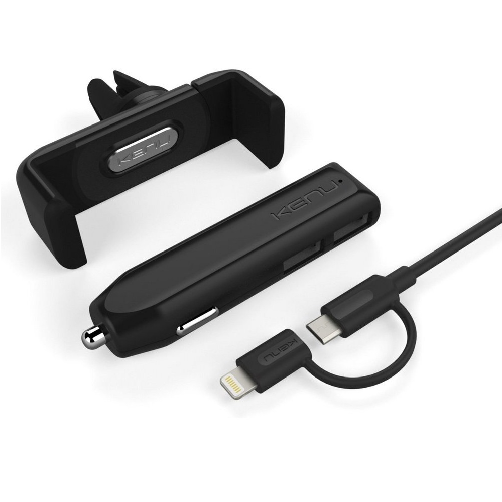 Kenu Airframe Plus Car Kit Deluxe - поставка за радиатора, зарядно за кола и кабел за iPhone, Samsung, HTC, LG, Sony и мобилни телефони (черна)