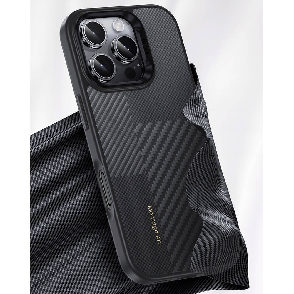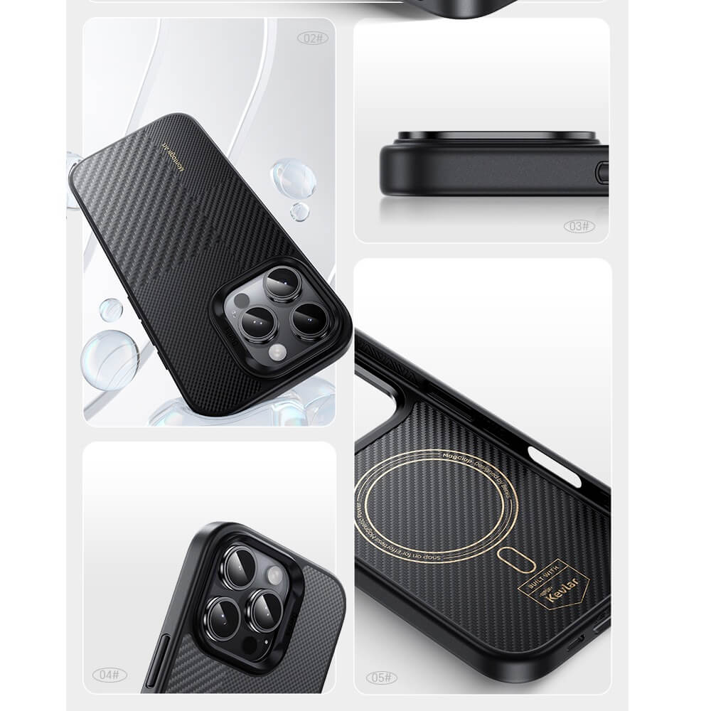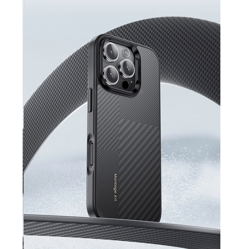 Кевларен кейс с MagSafe за iPhone 16 Pro - Benks Magnetic Armor Pro Montage Kevlar Metal Frame Camera Control Case 600D and 1500D (черен)