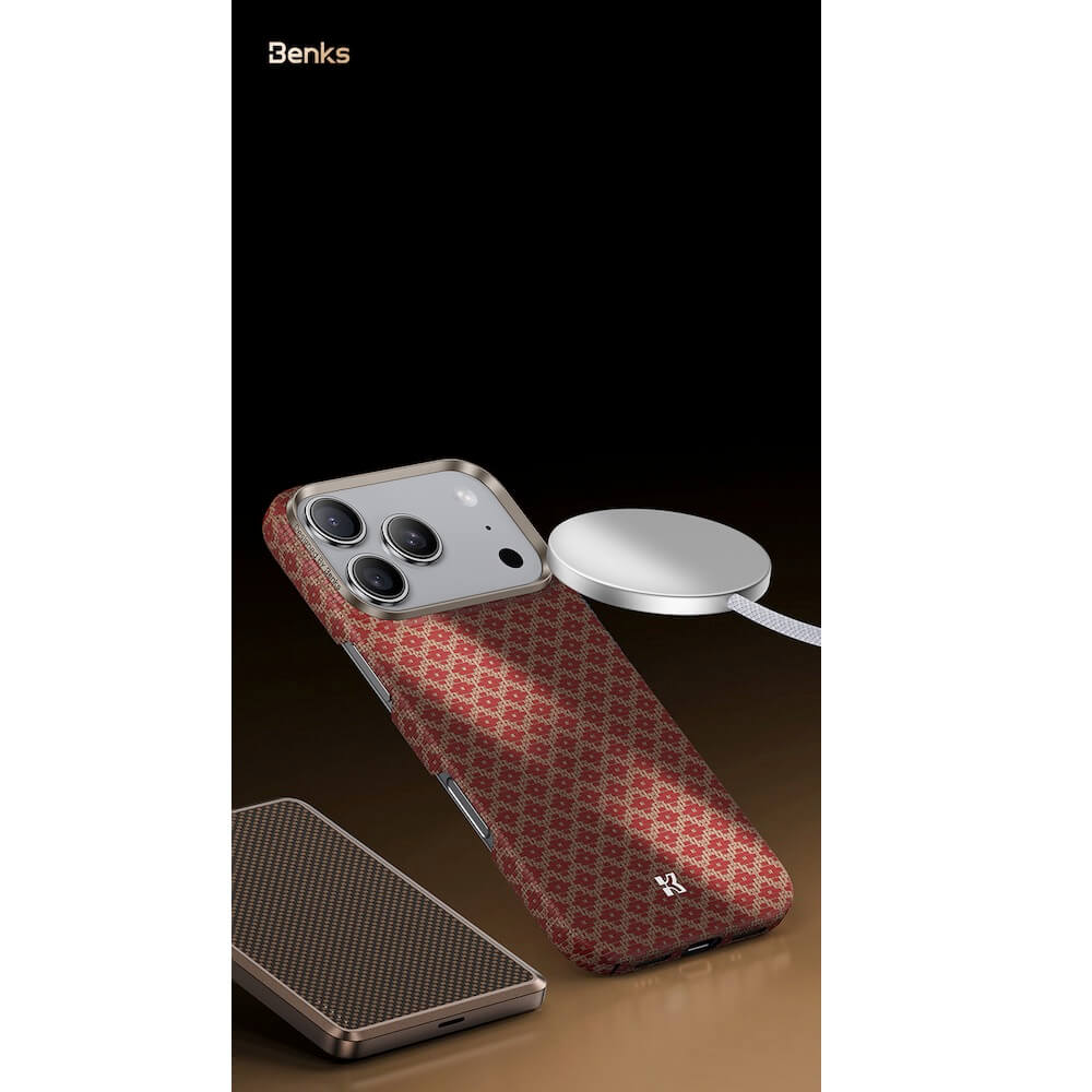 Кевларен кейс с MagSafe за iPhone 17 Pro Max - Benks ArmorGrid ArmorAir Magnetic Kevlar Metal Frame Case 600D (оранжев)