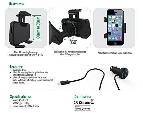 KiDiGi Car Mount Cradle - поставка и зарядно за кола за iPhone 6/6S, iPhone 6 Plus/6S Plus и мобилни устройства от 4 до 5.7 инча